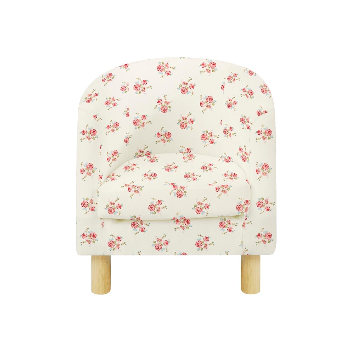 I love this little tub chair for its charming floral fabric, which adds a cosy, vintage touch to any child's room or play space. Its compact size makes it perfect for corners or as an accent piece in a nursery or living area. For styling, consider pairing it with neutral or pastel colour schemes to let the pattern stand out - adding soft cushions or a small throw can enhance comfort and visual interest. It works well in spaces that aim for a playful yet homely vibe, and its light wooden legs make it versatile for both traditional and contemporary interiors. Practical tips include using it as a reading nook or little seating spot for children, while its size keeps it manageable for everyday use.