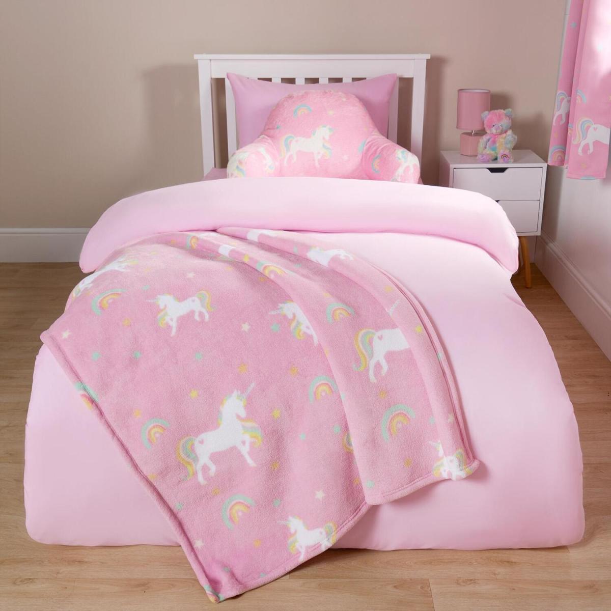 Kids Unicorn Soft Fleece Sherpa Reverse Blanket Throw - Pink
