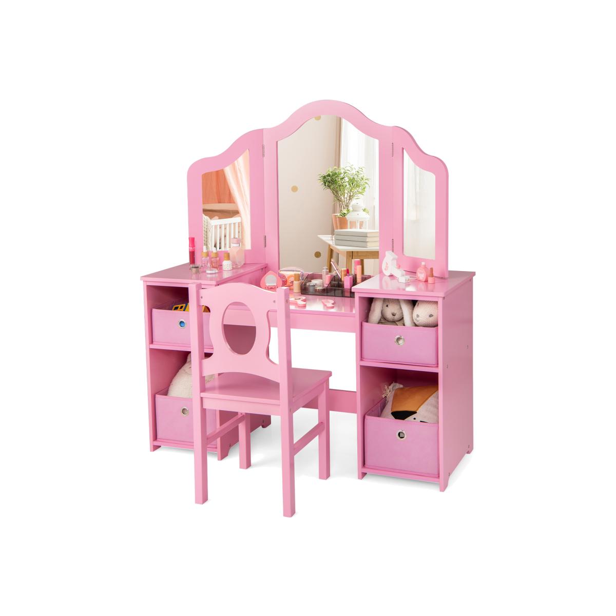 Kids Vanity Desk and Chair Set - Pink