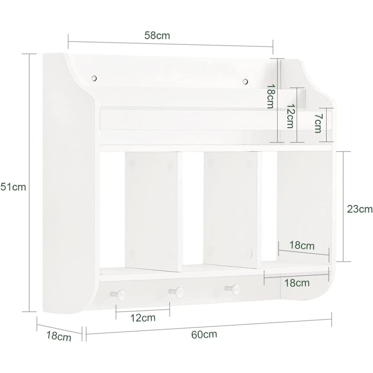 Modern design wall shelf is perfect for childrens room. An easy and stylish way to maximize room space.2 shelves and 3 compartments provide ample storage space for the books, toys, etc.3 hooks are ideal for hanging clothes, hat, school bag, etc.Made of high quality MDF in white lacquer. Durable and good looking. Rounded corners ensure safety for your child when using this shelf. The wall shelf also can be used in the hallway, living room and other places needs extra storage and display space. This shelf will keep your room nicely organized as well as distinctive. Modern design shelf, it will blend perfectly with any home decor.