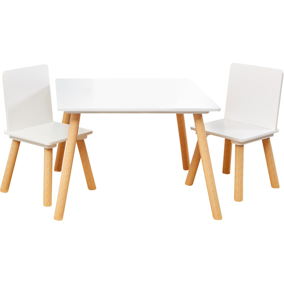 Our kids white and pinewood table and chair set is a perfectly sized modern table and chair set for your little ones. Your child will love to do arts and crafts, reading, play games and so much more with this adorable children's table and chairs set. The tabletop has a lacquer coating to give the table a premium finish whilst also protecting against scratches and make the set easier to clean. This table and chairs have solid beechwood legs which are designed to be sturdy and impact resistant. The set comes flat packed with easy to read instructions.