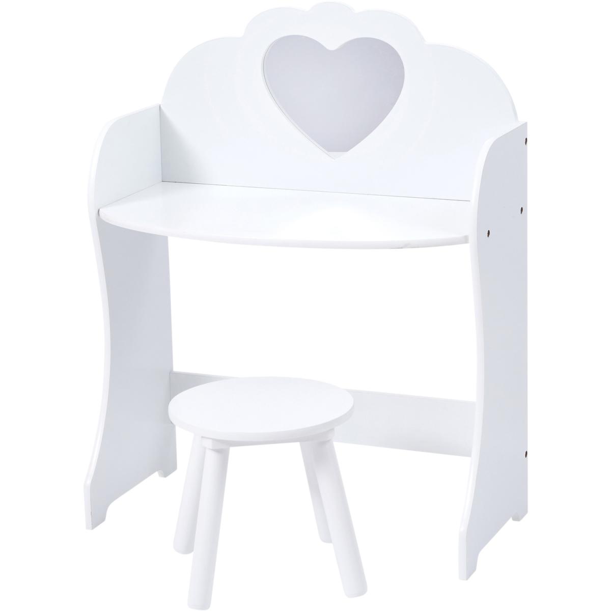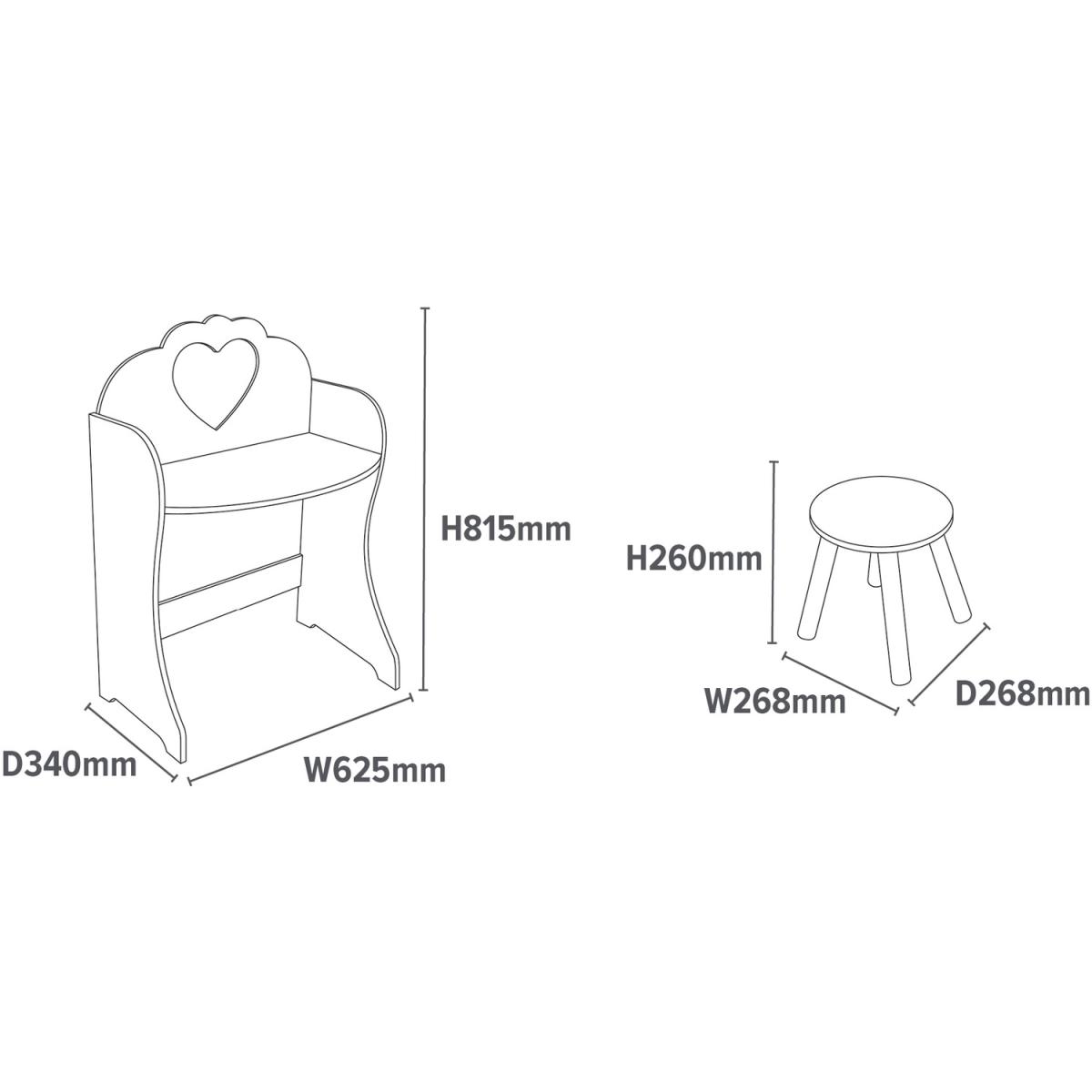 Add some classic elegance to your child's space with our kid's white wooden dressing table with a matching stool. This simple but classic design effortlessly fit into any home and space. This white wooden dressing table make playing dress-up fun. Alternatively, this dressing table and stool can also be used for writing, reading, or doing homework. This set is ideal for ages 3 years and older. This set comes flat packed with easy to use instructions.