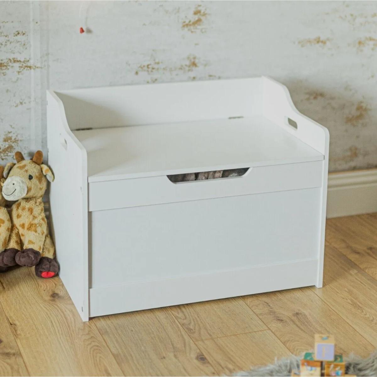 Finished with a solid white colour, this traditional toy chest will go with any decor and looks exceptionally good in nurseries, kids bedrooms etc. & has 2 handles at either side so you can move it from room to room.
