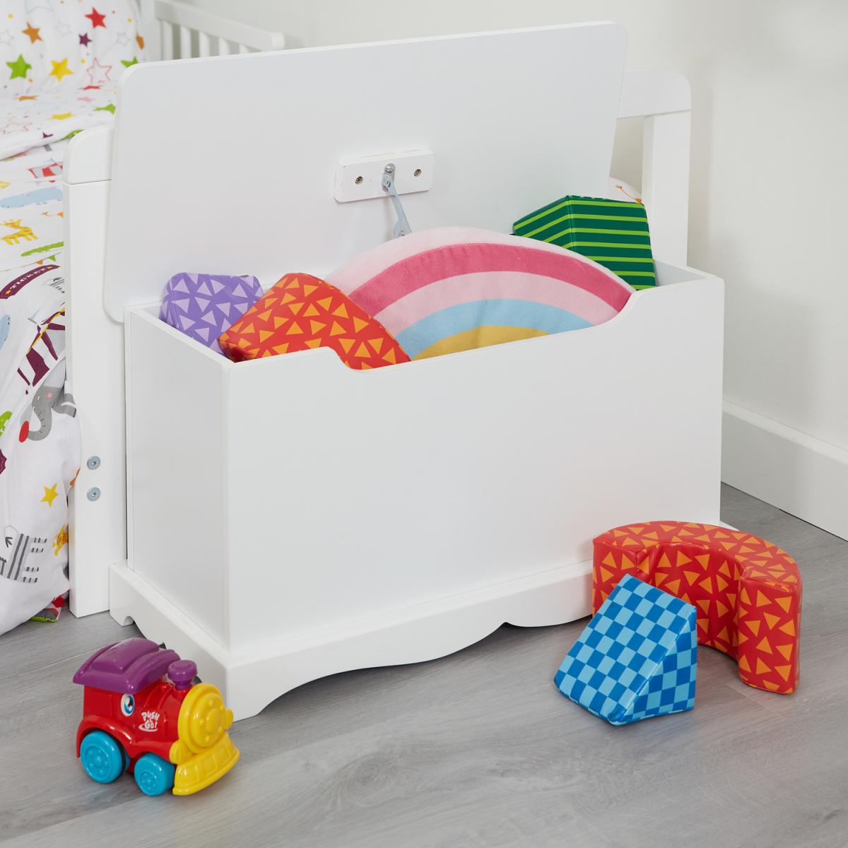 Our Kids White Wooden Toy Box will make a lovely addition to your child's nursery, bedroom, playroom or even your living room. With its subtle design, it will seamlessly fit into any home decor. Why not personalise this toy box with the use of stickers and make it personal to your child's space. Toy boxes are a time tested and traditional storage method for kids toys and children love to own their own toy box. Also, to protect the toy box, the surface has been lacquered, which also makes it easier to clean by using a damp cloth. This toy box comes supplied flat packed with easy to read instructions for quick and simple assembly.