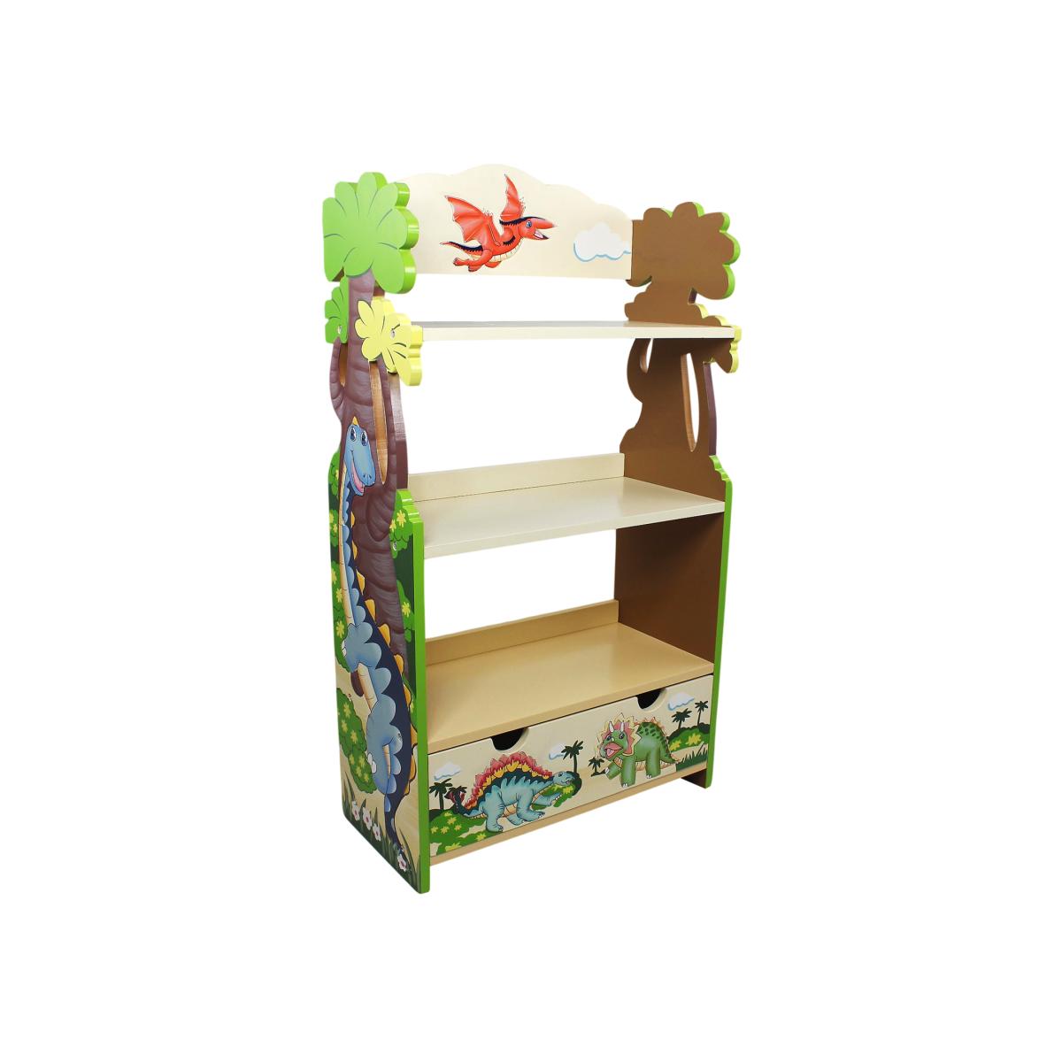Brighten your child's play area while keeping it organized and clutter-free with the Fantasy Fields by Teamson Kids Dinosaur Kingdom Kids Wooden Bookshelf with Storage Drawer. This colorful wooden shelving unit comes decorated with a prehistoric display featuring friendly dinosaurs for a whimsical playroom storage solution. The bottom storage drawer pulls out easily and contains ample space for your little one's toys, craft supplies, clothes, and more, while the 3 shelves above keep books and other toys organized. Purchase this bookshelf on its own or with other items from the Dinosaur Kingdom collection for a bright and joyful playroom. For quick and easy assembly, step-by-step instructions are included. With a solid design constructed of sturdy wood, this organizer is built to provide long-lasting use. For convenient upkeep, the storage shelf's easy-to-clean surfaces make wiping up any spills a breeze. The Fantasy Fields by Teamson Kids Dinosaur Kingdom Kids Wooden Bookshelf with Storage Drawer measures 22" x 10.25" x 37.75" to fit in almost any bedroom or play area. Teamson is a global lifestyle home designs brand bringing joy into every home through beautiful, quality pieces made for stylishly comfortable everyday living. Our Teamson Kids brands give flight to fun, discovery and learning through beautifully crafted, safe, and trend-right furniture pieces and toys for kids with a spirit of curiosity and adventure. Our Fantasy Fields by Teamson Kids pieces tap into whimsical design, magical craftsmanship, and original concepts that will create new playtime memories that will make their imagination soar into the clouds.