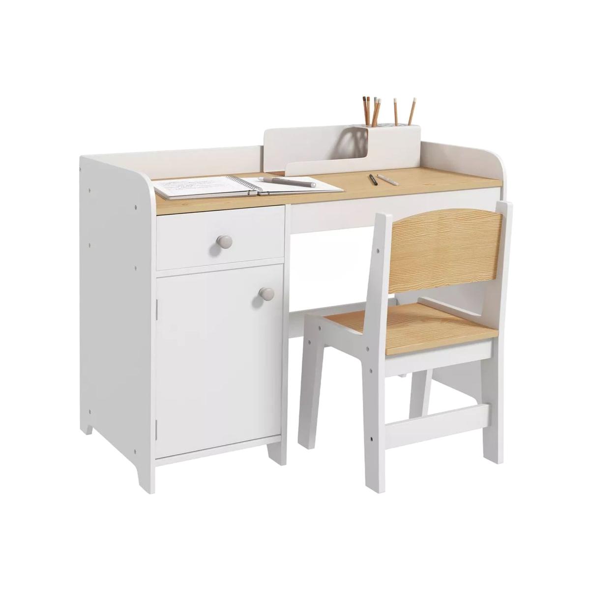 Kids Wooden Desk and Chair - Natural and White