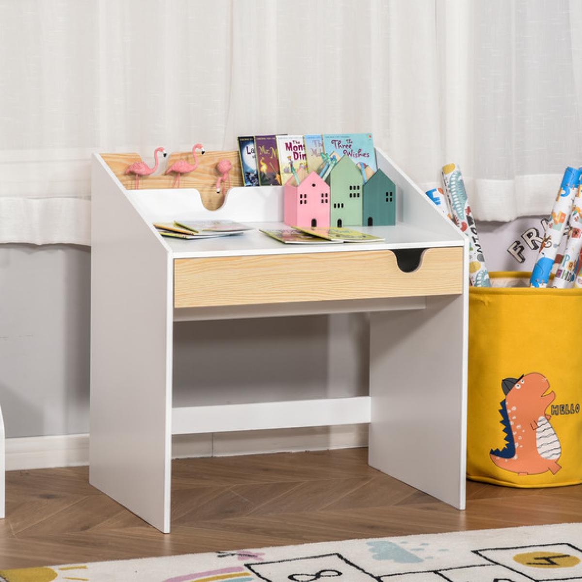 Kids Wooden Writing Desk with Drawer - White and Natural
