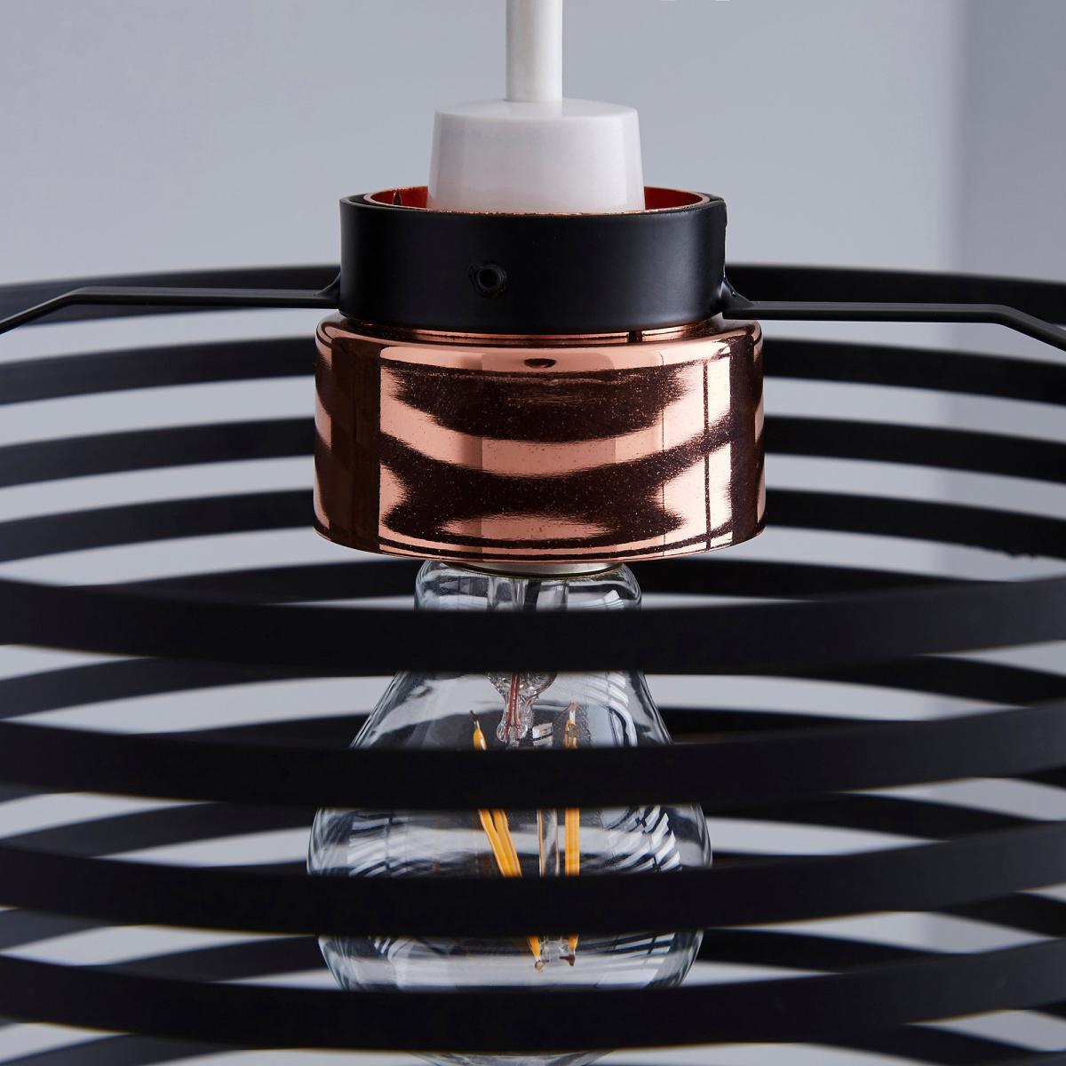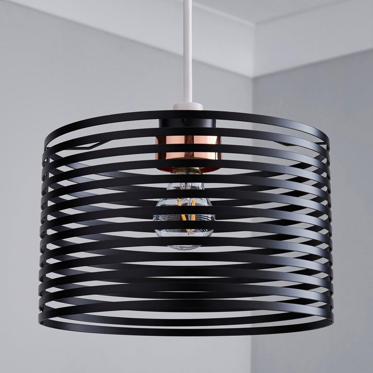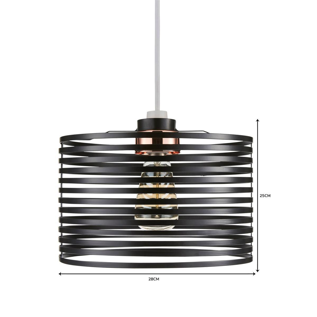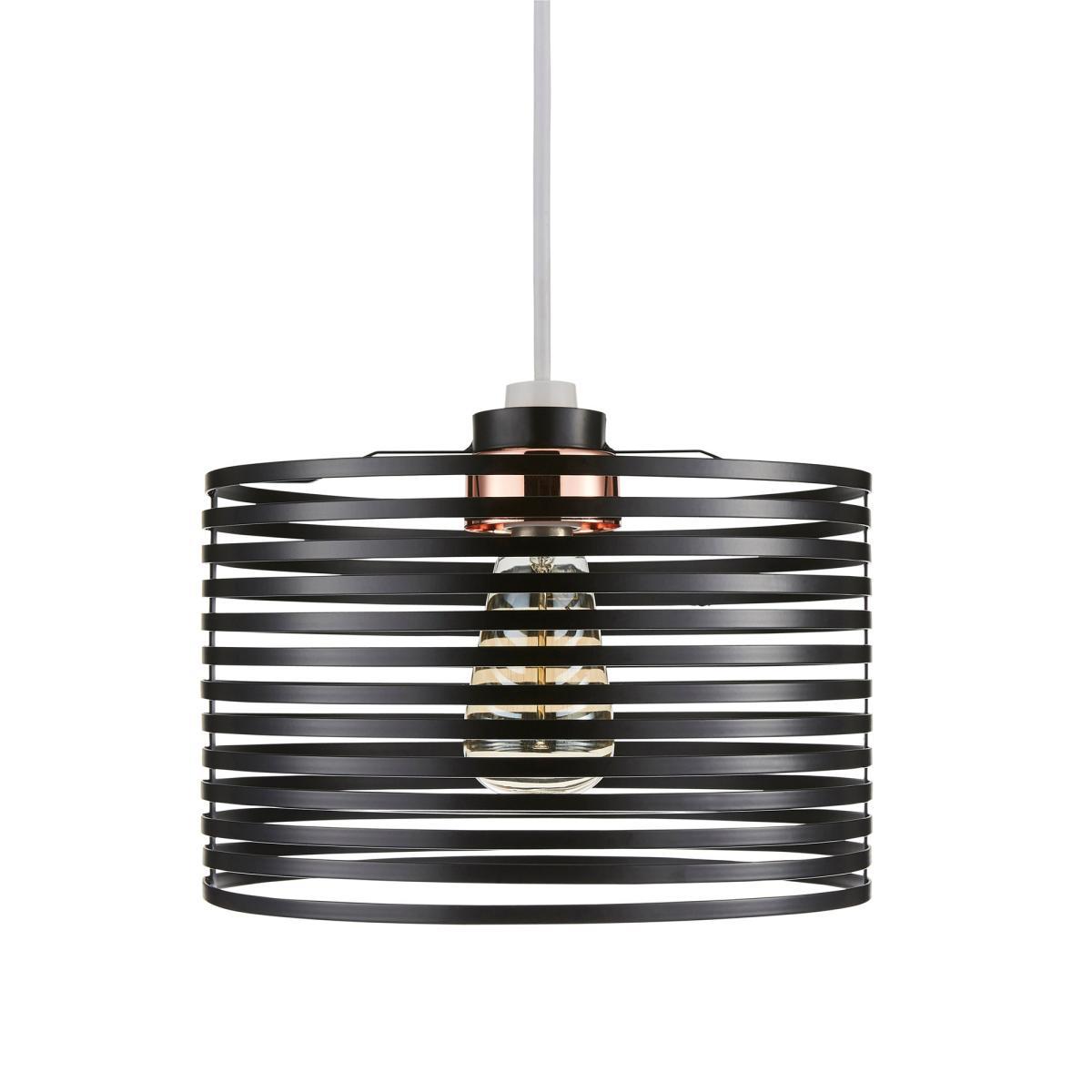 Designed with a horizontal banded frame this circular Kiel pendant light fitting features a sleek black painted finish.