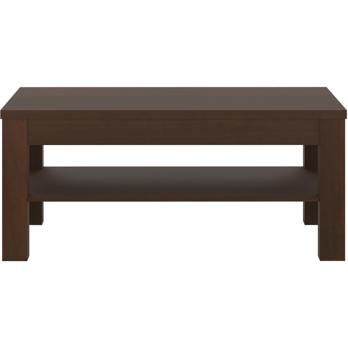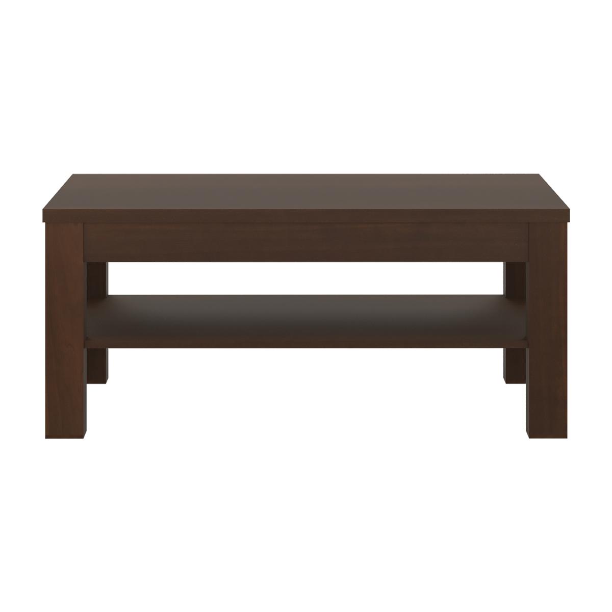 I like this coffee table with shelf for its clean, classic style and functional design. The dark mahogany finish adds warmth and richness, making it suitable for both traditional and contemporary interiors. It works particularly well in cosy living rooms or paired with neutral or earthy tones, where it can serve as a sturdy centrepiece. For styling, consider layering a few books or decorative trays on top, and adding some greenery or candles on the shelf below to create visual interest without cluttering. Its simplicity means it’ll complement a variety of décors, while its practicality helps maximise storage within a compact footprint.