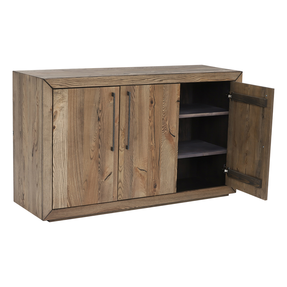 Bold and beautiful, the Kielder 3 Door Sideboard has a striking wooden aesthetic, accentuated by a cool toned, grey oil finish to define the ash wood’s characterful grain, knots and natural splits. Clean cut lines and bevelled edges give the Kielder is neat, contemporary look while 3 doors to 2 internal compartments, each fitted with shelving, provide an abundance of space for crockery, tableware, glasses and more. Perfect for dining rooms, large kitchens and other rooms, the Kielder is ideal for storage and displaying accessories.