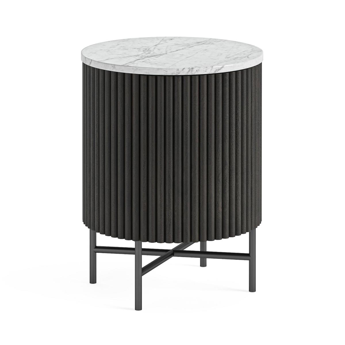 * Mango wood construction* Marble top* Trendy slatted front* Storage cupboard* Contemporary, rounded design Keep your nighttime essentials close at hand with our Kiera Bedside Table. Made with durable mango wood and featuring a stylish marble top, this table is perfect for any bedroom. The rounded design and slatted front add a contemporary touch, while the storage cupboard provides ample space for books, tissues, and more. Please note we are unable to deliver this item to Northern Ireland.