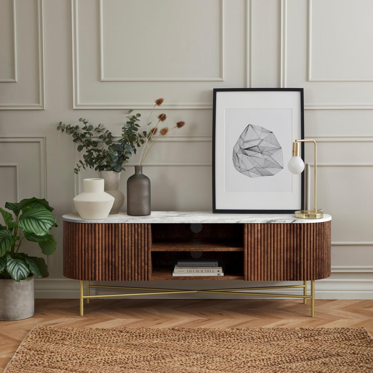 Kiera Wide TV Stand, Mango Wood & Real Marble Walnut
