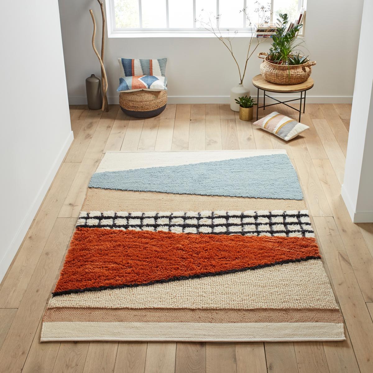 We love the 'mixed media' look created by this Keiran rug, which is available in a range of sizes to brighten up rooms of all types. With its contrasting materials, patterns and colours it creates a highly original contemporary look.