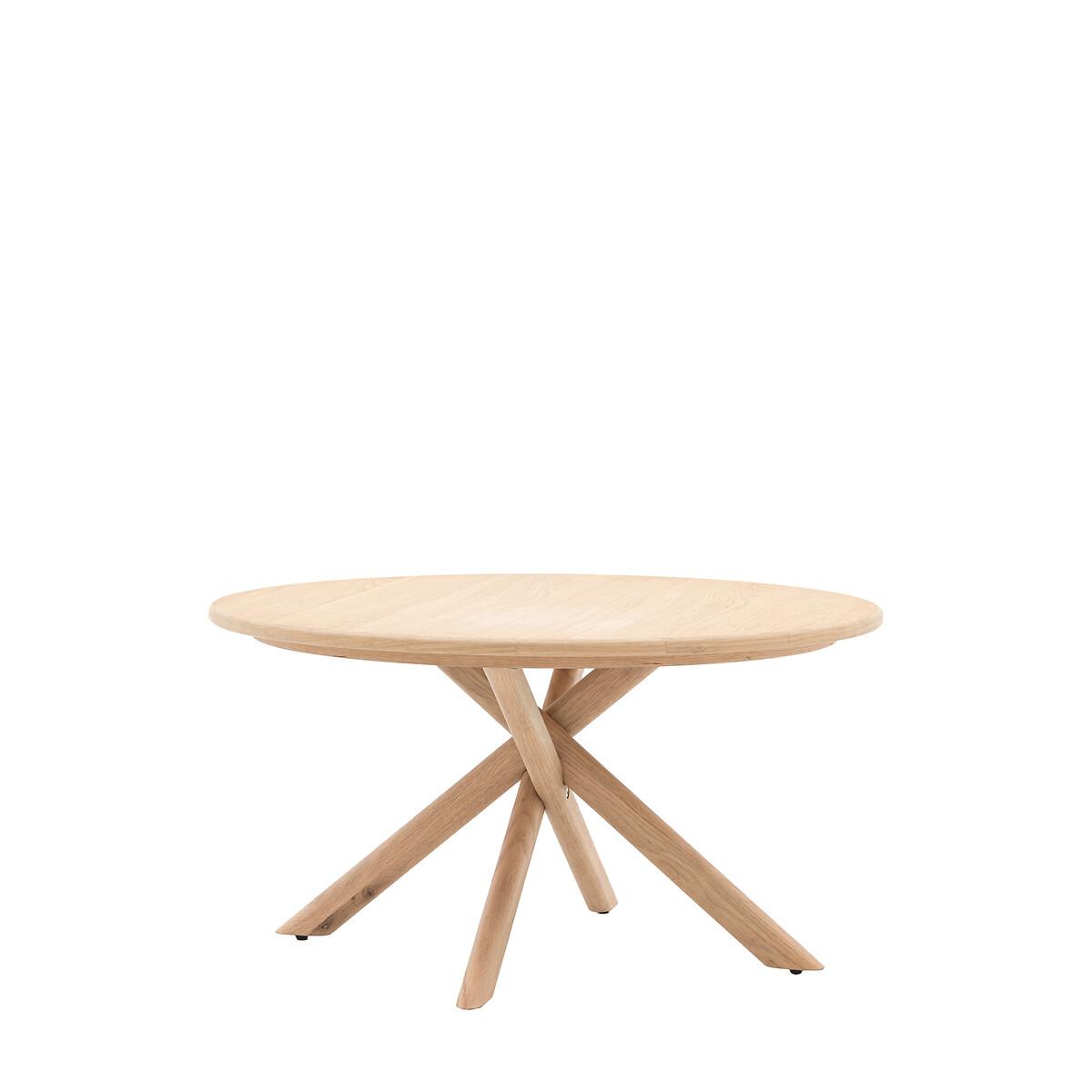 This coffee table is a stylish and functional addition to any living room. Its round tabletop and unique, sculptural base create a modern and eye-catching look. The natural wood finish adds warmth and character to your space. Perfect for relaxing with a book or entertaining guests. Product Details• Made from natural oak veneer, beautifully finished in a matte natural laquer to highlight the grain of the wood• Sculptural base tripod design base• Partial assembly required (legs/feet only)• Care advice - Wipe clean with a cloth• 12 months manufacturers warranty. Product Composition - MDF / Oak / Oak Veneer / Rubberwood. Product Dimensions - 77 cm x 77 cm x 41 cm, Weight - 12.5 KG Clearnace to floor - 36.9 cm Package Dimensions - 83 cm x 83 cm x 11 cm, Weight 15 KG This product will be dispatched by one of our trusted suppliers. You’ll be contacted by their selected courier about your delivery. Please note: this product cannot be delivered to all Offshore Islands, Northern Ireland or Republic of Ireland.