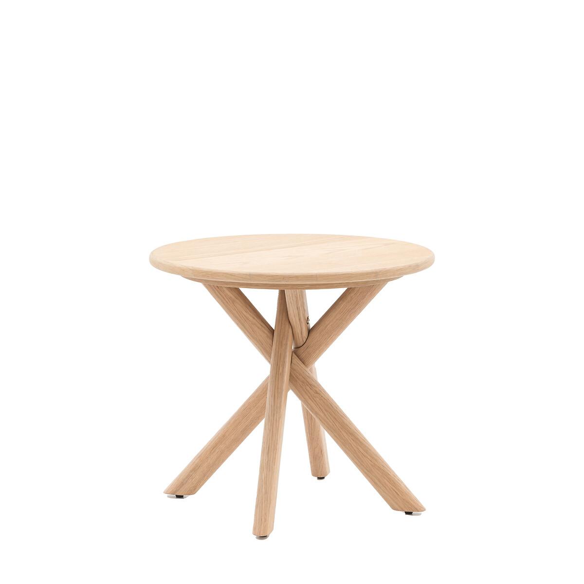 This side table is a stylish and functional addition to any living space. Its round tabletop and unique, sculptural base create a modern and eye-catching look. The natural wood finish adds warmth and character to your space. Perfect for use as a bedside table, sofa side table, or accent table. Product Details• Made from natural oak veneer, beautifully finished in a matte natural laquer to highlight the grain of the wood• Sculptural base tripod design base• No assembly required• Care advice - Wipe clean with a cloth• 12 months manufacturers warranty. Product Composition - MDF / Oak / Oak Veneer / Rubberwood. Product Dimensions - 49 cm x 49 cm x 45 cm, Weight - 6.5 KG Clearance to floor - 41 cm Package Dimensions - 55 cm x 55 cm x 11 cm, Weight 7 KG This product will be dispatched by one of our trusted suppliers. You’ll be contacted by their selected courier about your delivery. Please note: this product cannot be delivered to all Offshore Islands, Northern Ireland or Republic of Ireland.