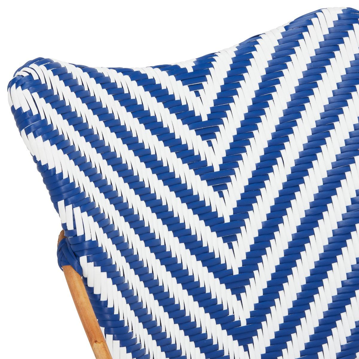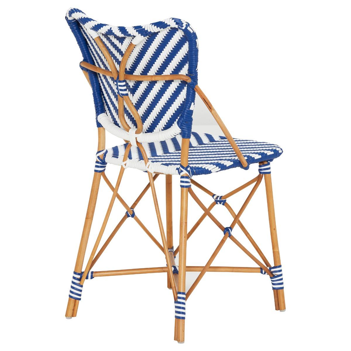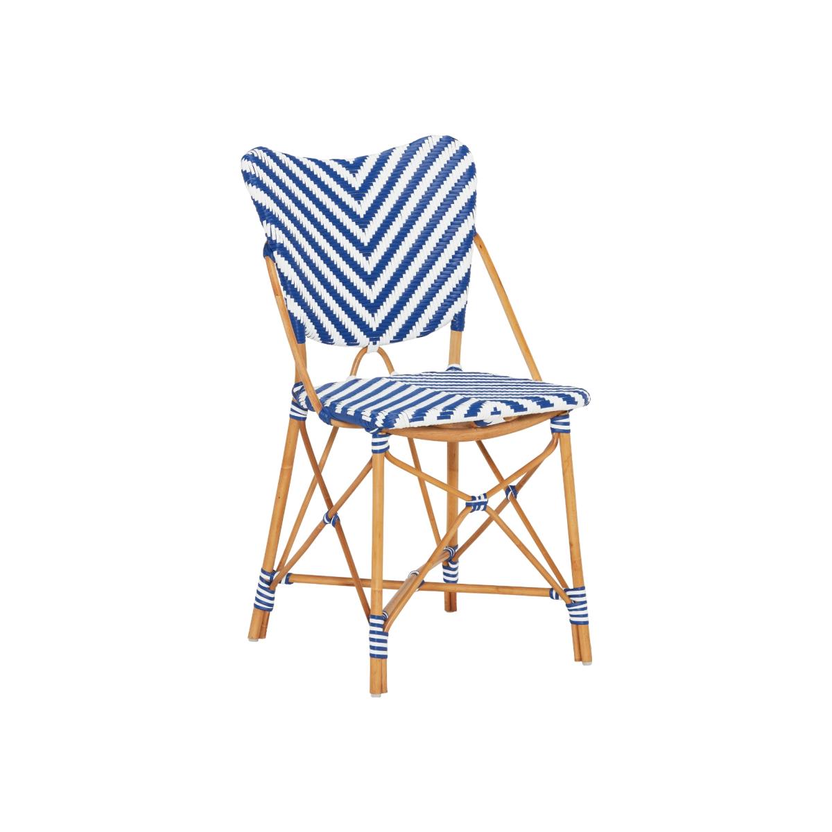 Add a splash of stunning cobalt blue and bright white to your dining room with the Kiki Rattan Dining Arm Chair. The gorgeous bold pattern and colour choices is toned down with the earthy rattan frame, creating the perfect contrast and stylish addition placed around your dining table. The Kiki Rattan Dining Side Chair is comfortable and quirky, the bold statement your room needs.