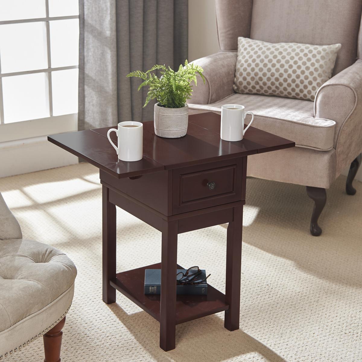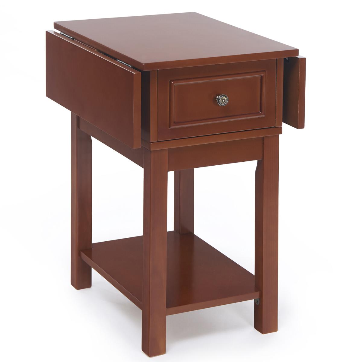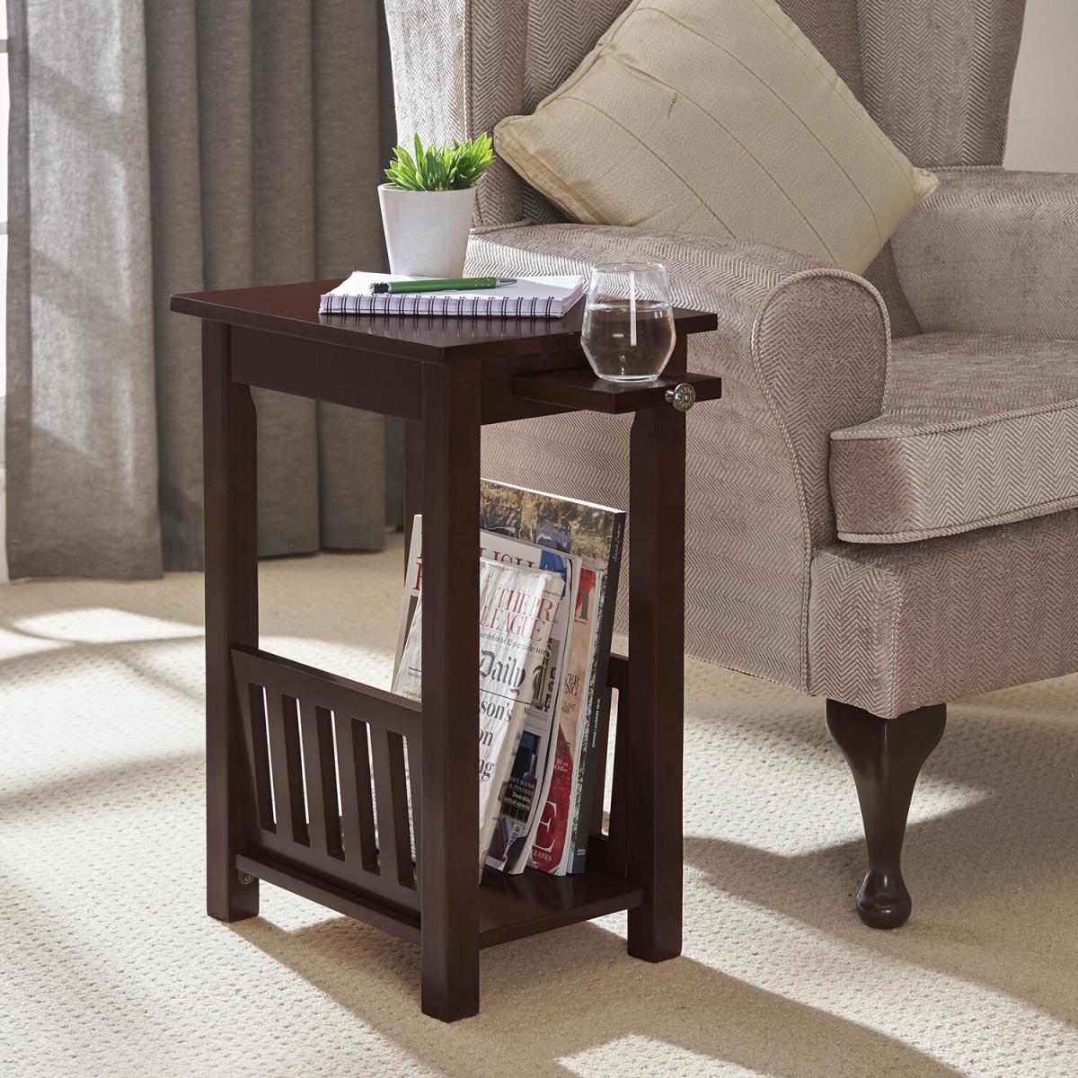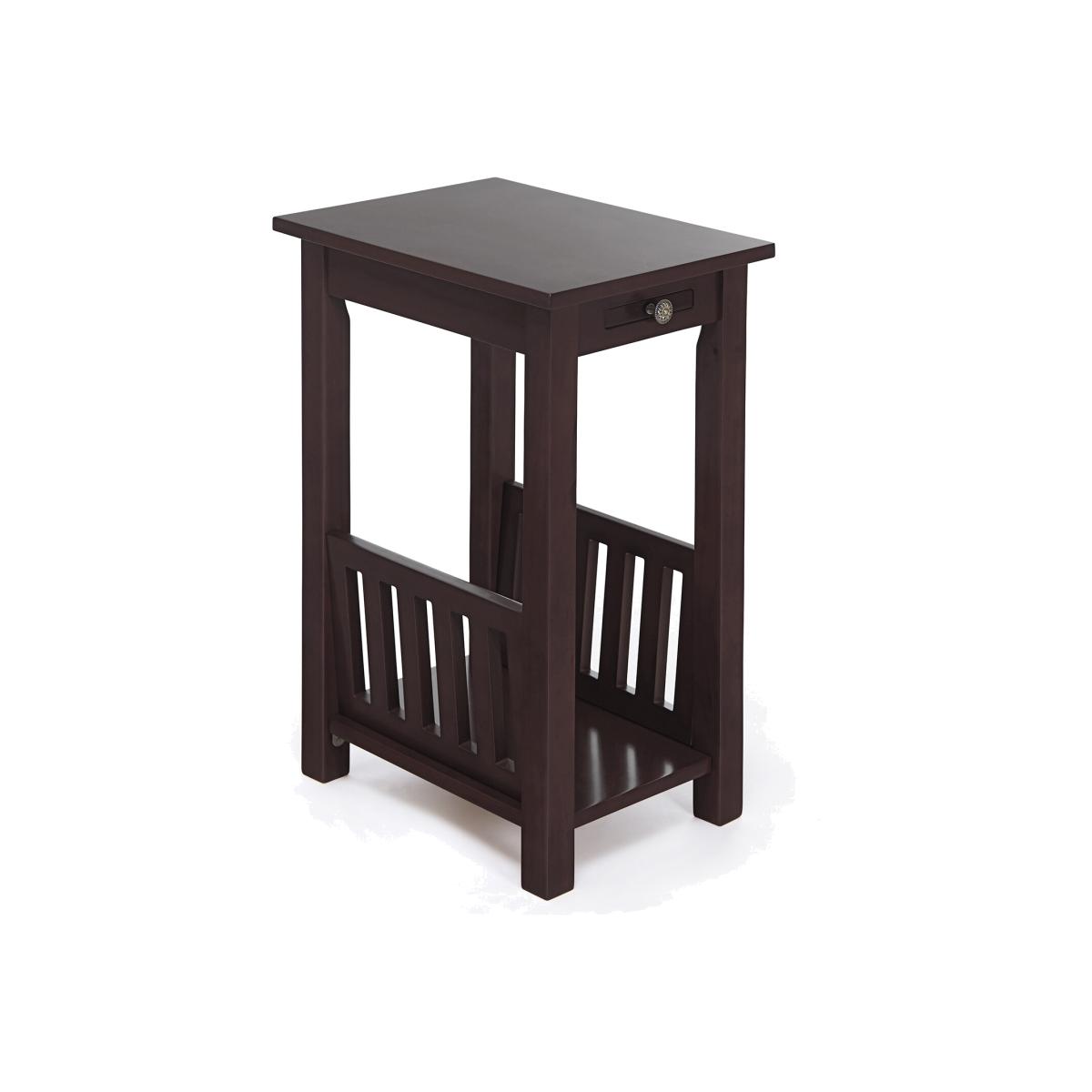This stylish End Table with Magazine Rack will look stylish in any room in the house. The End Table not only offers a magazine rack to keep your newspaper magazines and books neat and tidy but the unique pull-out tray offers a place for your drink or remote control. Made from solid timber and MDF sections and finished in either rich mahogany or oak colour. Home assembly required.