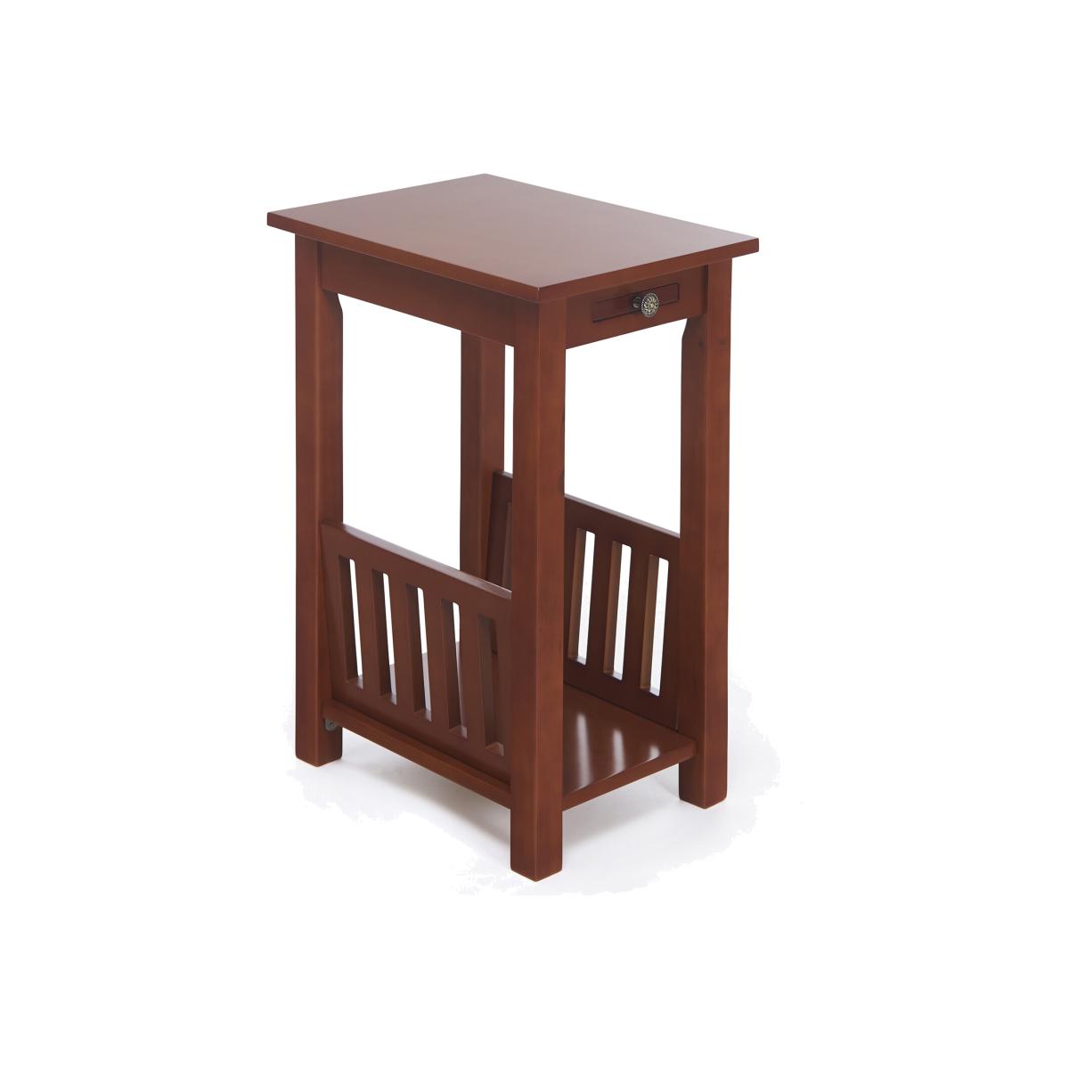This stylish End Table with Magazine Rack will look stylish in any room in the house. The End Table not only offers a magazine rack to keep your newspaper magazines and books neat and tidy but the unique pull-out tray offers a place for your drink or remote control. Made from solid timber and MDF sections and finished in either rich mahogany or oak colour. Home assembly required.