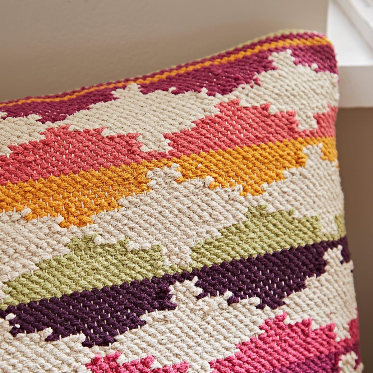 I love this kilim cushion for its vibrant colours and textured weave, which brings a lively yet cosy touch to any space. It's versatile enough to work well in both bohemian and contemporary interiors, providing a pop of colour on neutral sofas or armchairs. For styling tips, pair it with other patterned textiles for an eclectic look, or keep it simple with solid-coloured pieces to let the cushion stand out. Its durable cotton fabric also makes it practical for everyday use, adding both comfort and visual interest to your living room or bedroom.