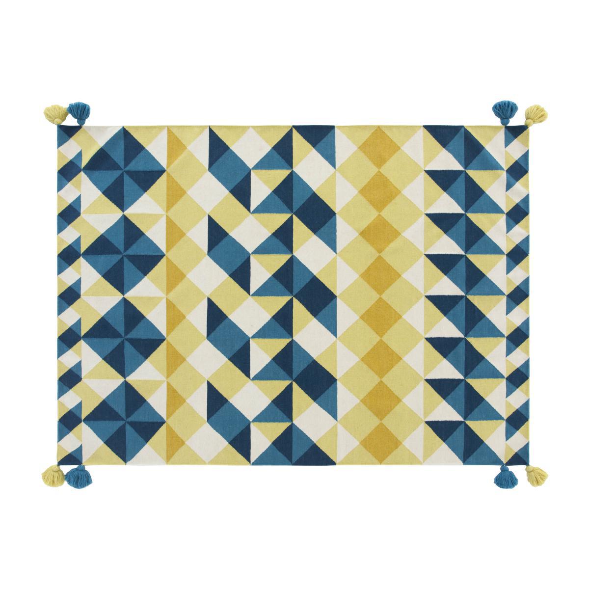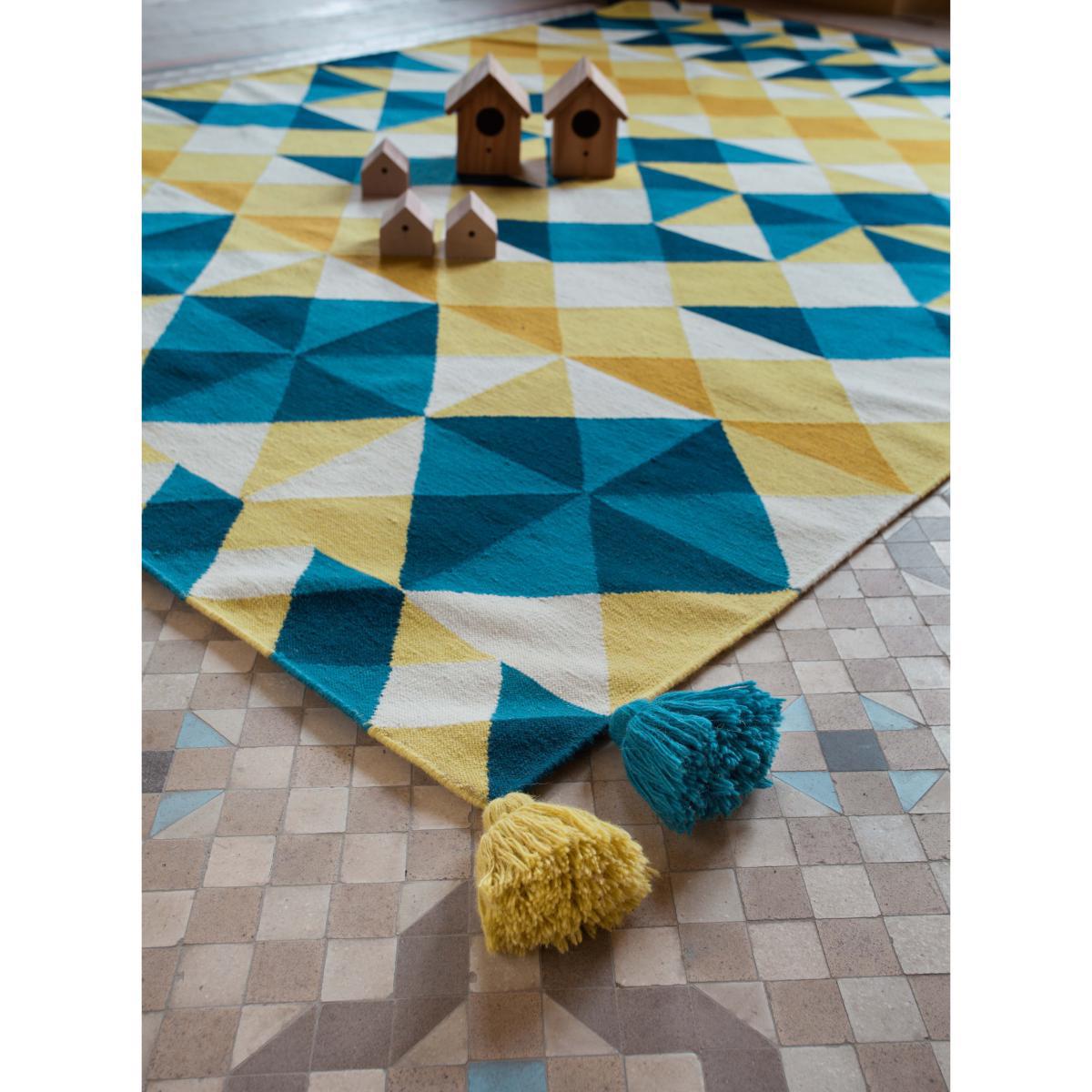 The rug Mosaïek, is part of the Kilim Collection, woven rugs traditional way, combining ethnic style, geometric composition and modern design. Mosaïek was created by Javier Tortosa, full of a multitude of cultural influences. He brings a personal note in your habitat highlighted by a search for balance between folklore, know-how and innovative mix of patterns. 8 pompoms ends reinforce the uniqueness of this model ethnic strand and very contemporary. Reversible, Mosaïek is used on both sides with a geometric design in intense colors. Mosaïek is 100% wool and measures : L 240 x W 170 cm.