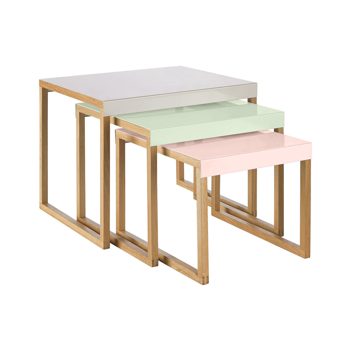 Versatile and lightweight, the Kilo metal nest of 3 side tables are crafted from powder-coated metal and lacquered solid oak legs. Designed by Nordic designers, Elling Ekornes and Trine Haddal Hovet, these tables are easy to assemble and can also be used as bedside table. Exclusive to Habitat and in 3 stylish colours, these tables are finished with feature finger joints. Part of the Kilo range, it’s available in various colours.