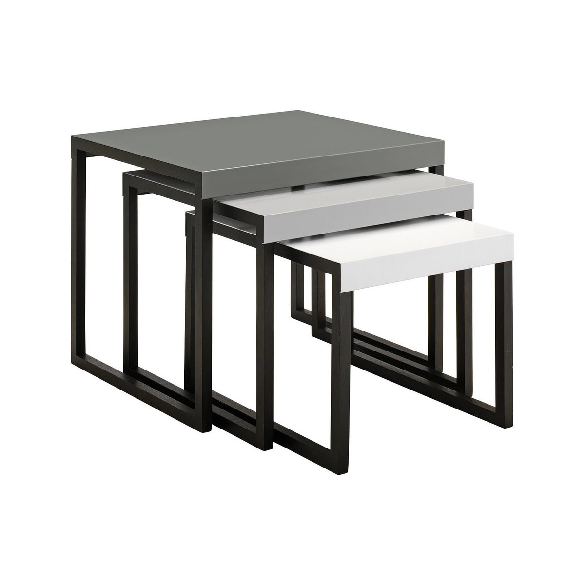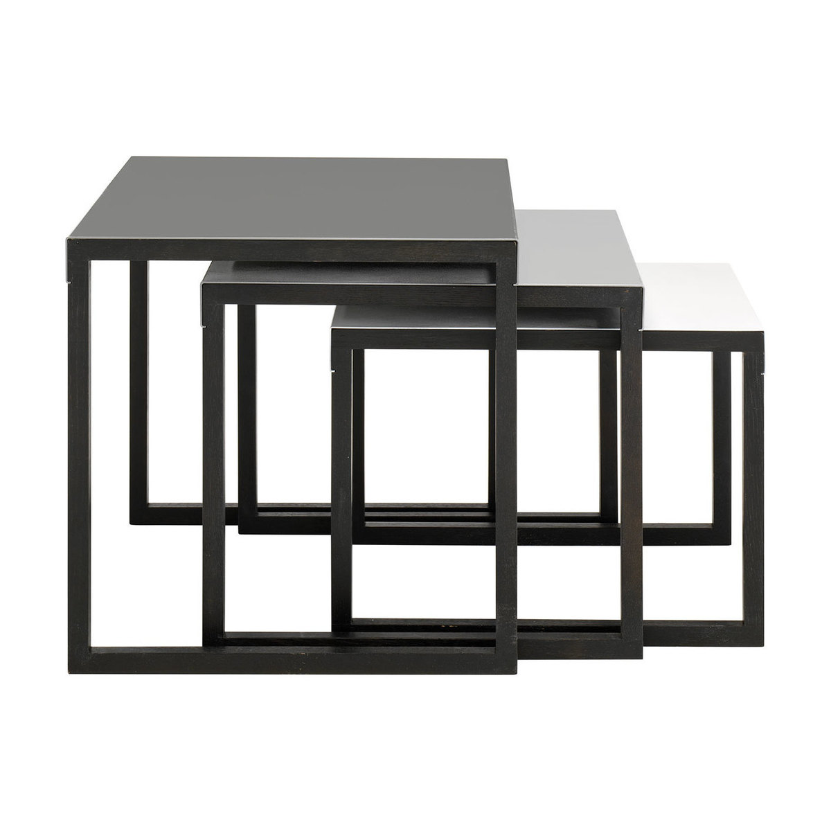 Kilo Solid Oak And Grey Metal Nest Of 3 Side Tables, Grey