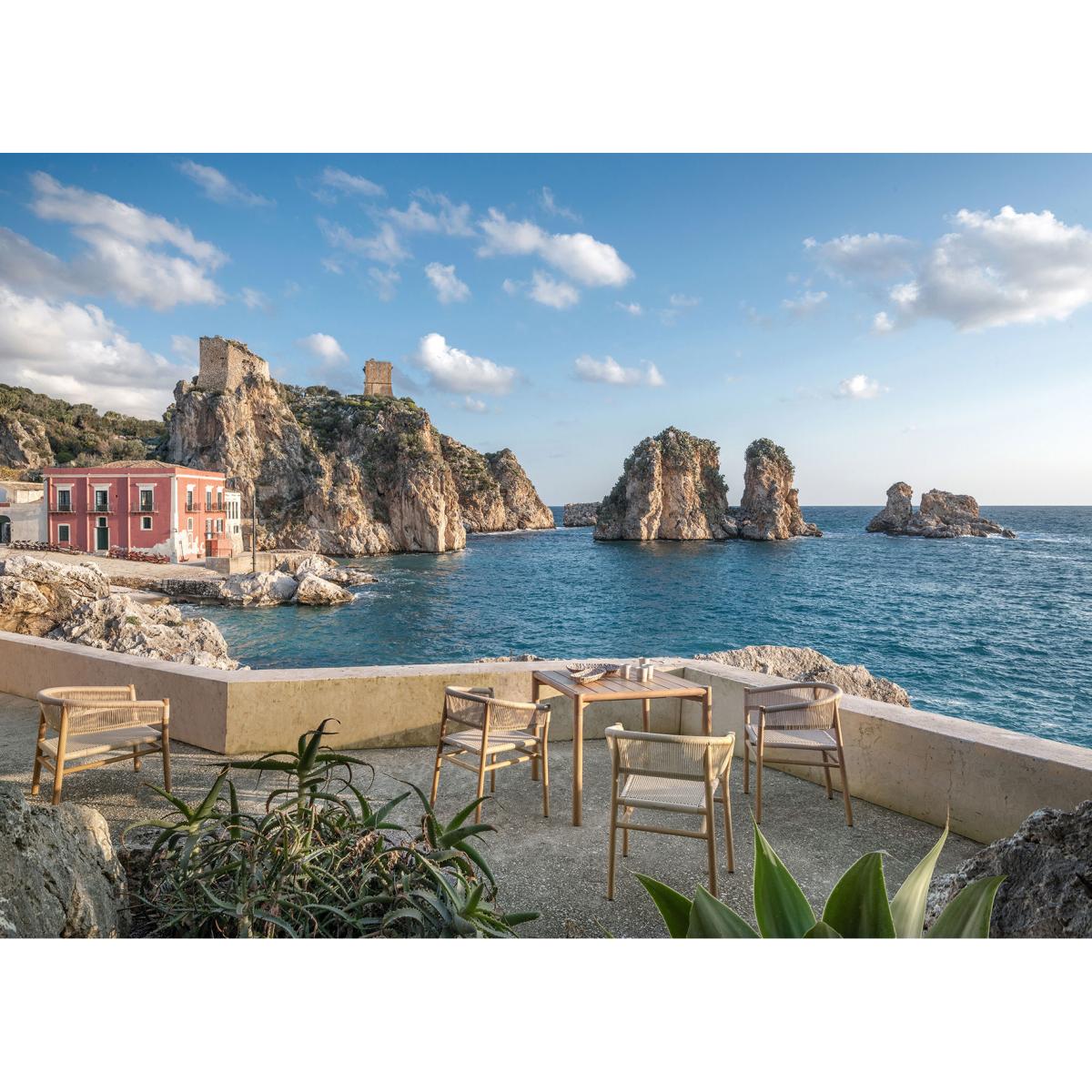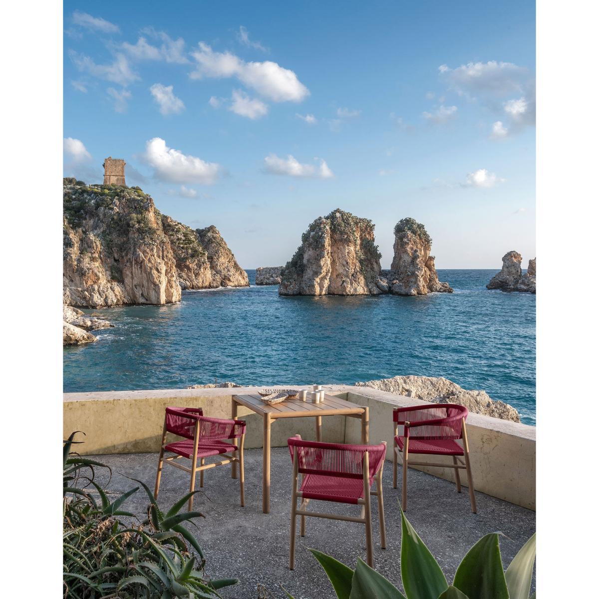 Ultra-sturdy, the Kilt table is made of Natural solid teak, with a slatted top. This sleek table is ideal for a wide range of settings. It seats 4.