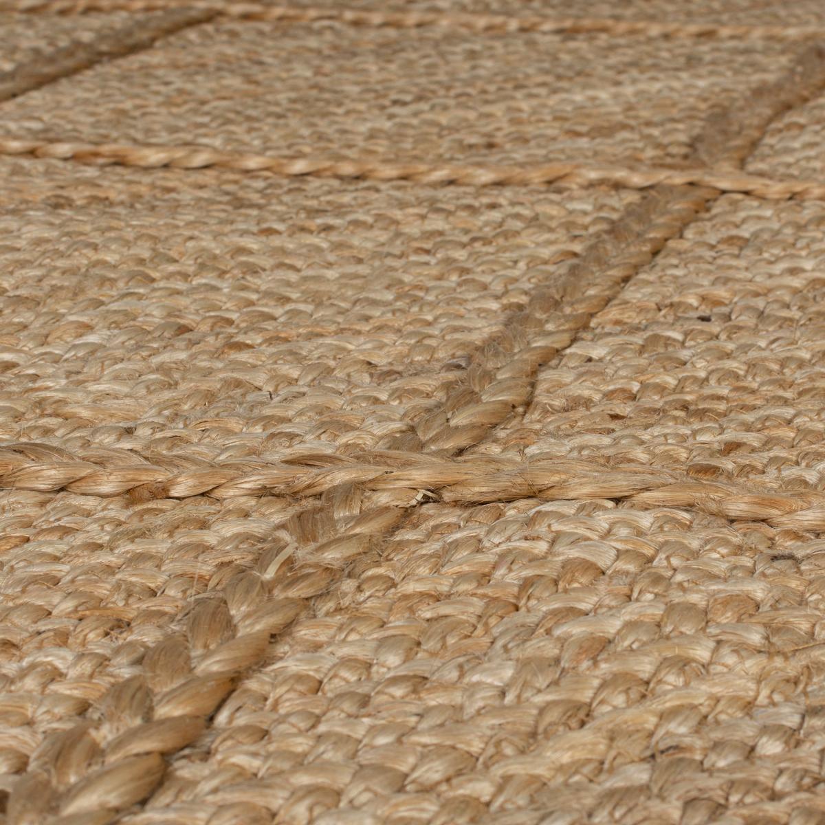 The Kilworth Jute Rug pairs a geometric trellis design with a natural jute style for an up-to-date look on a timeless classic. The semi-plain style uses a stitched braided pattern against the golden jute shade for a subtle yet stylish look. Hand-crafted by skilled rug artisans in 100% jute, each braided piece is unique to your space. The flatweave surface is ideal for busy zones. We love using this design to add a welcoming layer to hallways and double doors. A small amount of fibre loss is normal. Do not pull loose fibres, just trim with scissors. Safe for use on a heated floor. Use a suction type vacuum - rotating brushes may damage this rug. Re-roll your rug pile out for 24 hours to reduce curling. An anti-slip mat will help prevent slipping. Blot spills immediately with a clean, dry white cloth. Do not rub. Colour may vary as this product is made from natural fibres. Please do not place this rug near an open fire. Please do not leave children or infants unattended.