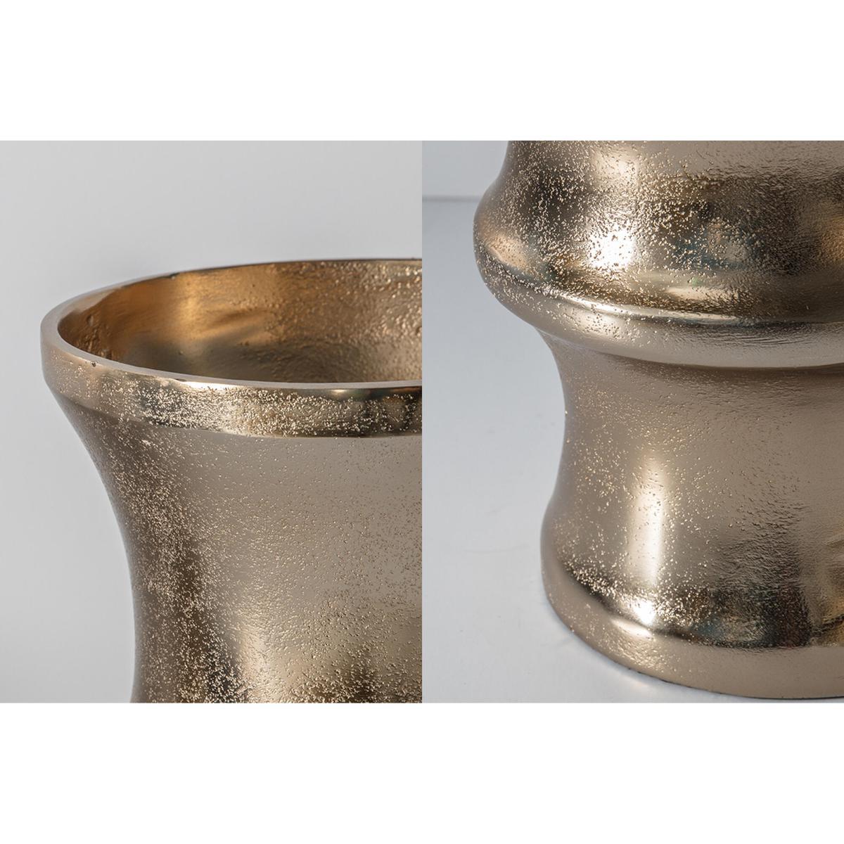 Metallic magnificence to say the least, dress up your home with the Kimbark Metallic Vase. Created from a 100% Cast Aluminium with a waved design, rounded for a smooth statement, this vase is ideal for both fresh flowers, plants and faux stems alike. Available in two sizes, the golden shine of the Kimbark Vase is the perfect compliment to any style home.