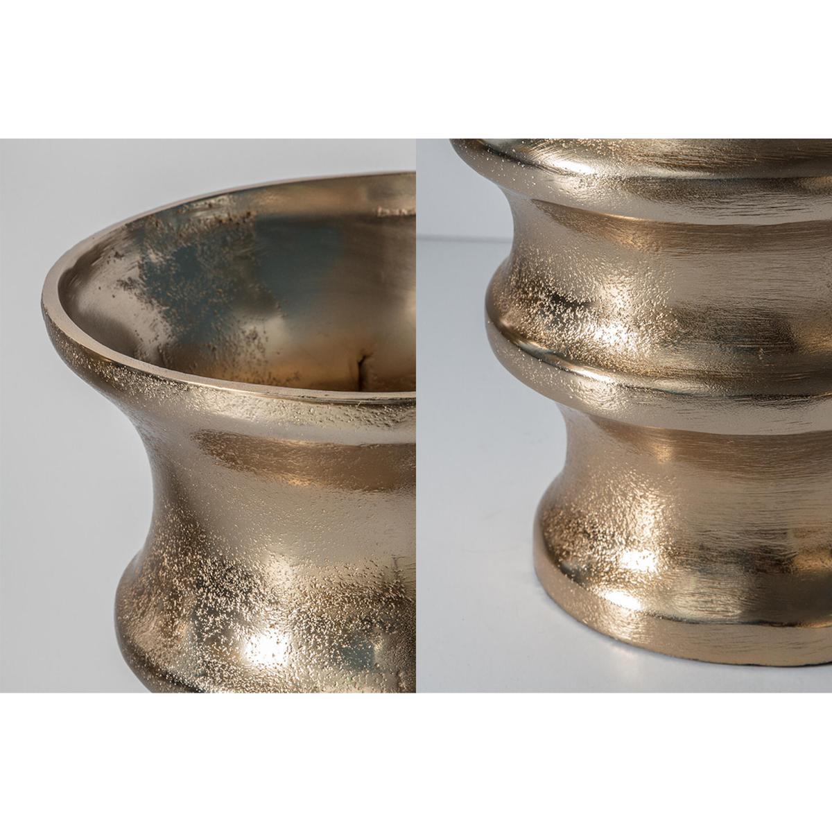 Metallic magnificence to say the least, dress up your home with the Kimbark Metallic Vase. Created from a 100% Cast Aluminium with a waved design, rounded for a smooth statement, this vase is ideal for both fresh flowers, plants and faux stems alike. Available in two sizes, the golden shine of the Kimbark Vase is the perfect compliment to any style home.