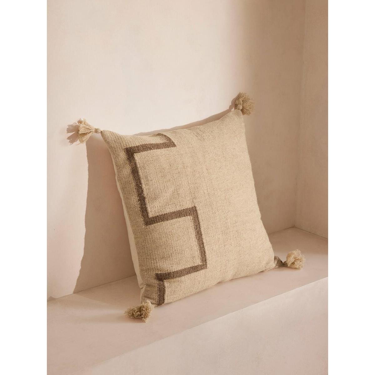 Our Kimberley floor cushion adds a touch of Soho Roc House style to your living space, while echoing the building's natural interior elements. Handwoven from a textured wool by skilled artisans in India, it features a tonal geometric design and tassel detail. Square floor cushion 100% wool Geometric print Handwoven in India Inspired by Soho Roc House