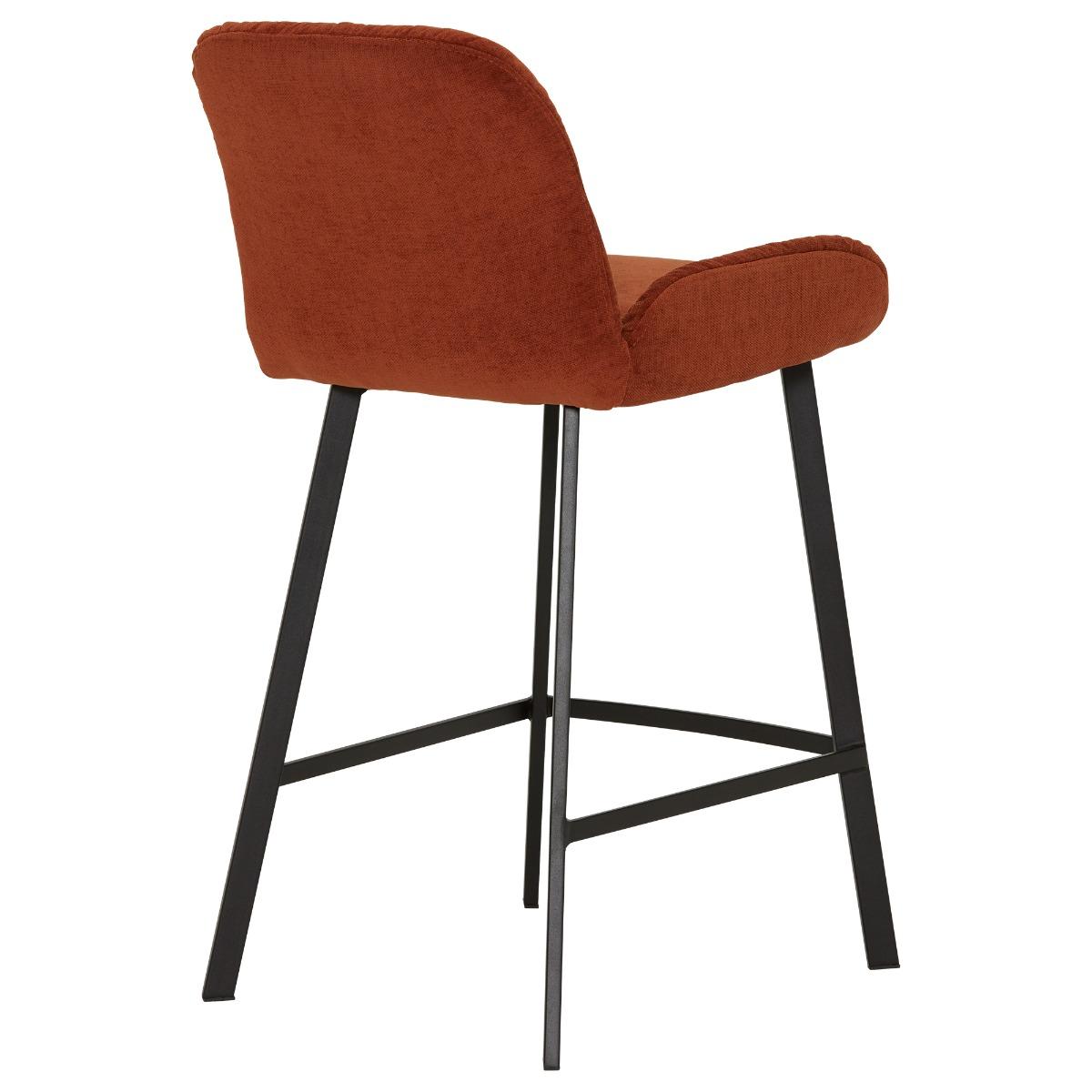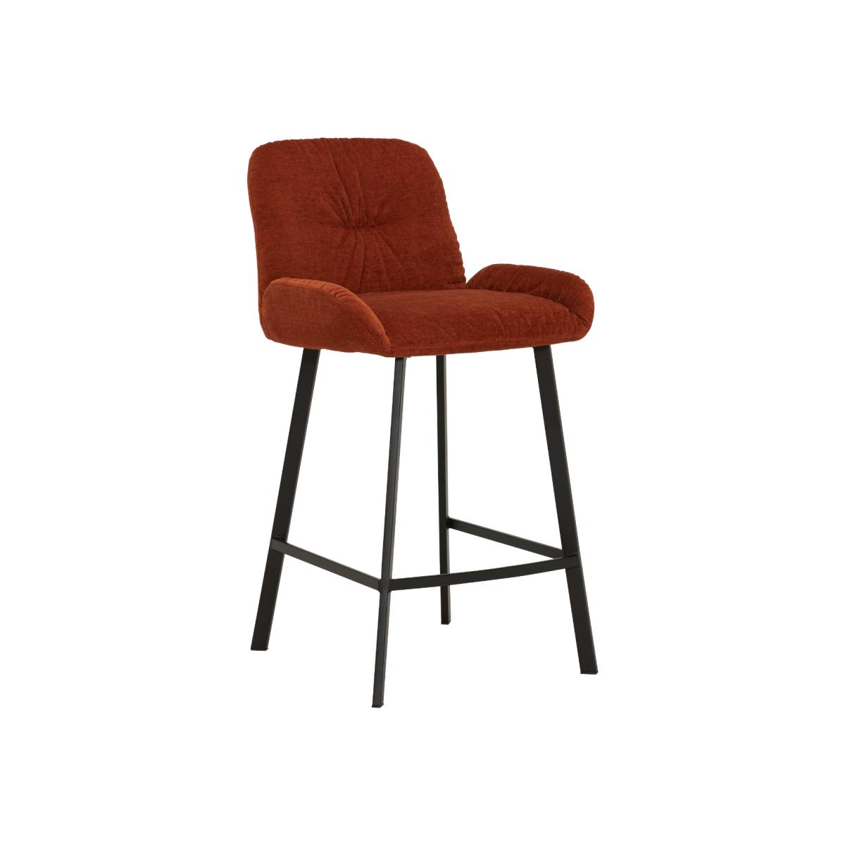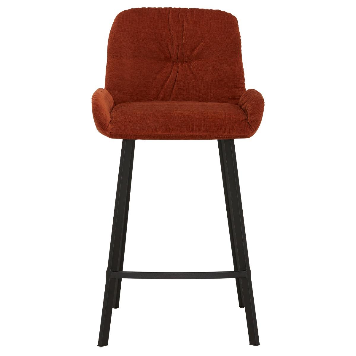 The Kimi Counter Stool, Orange Fabric is both super stylish and cozy. Displaying luxuriously warm burnt orange velvet fabric with thick padding for extra comfort and complete with black powder-coated metal legs for a contemporary finish. Pair with the Kimi Dining Chair, Orange Fabric for a cohesive look in your kitchen/dining space.