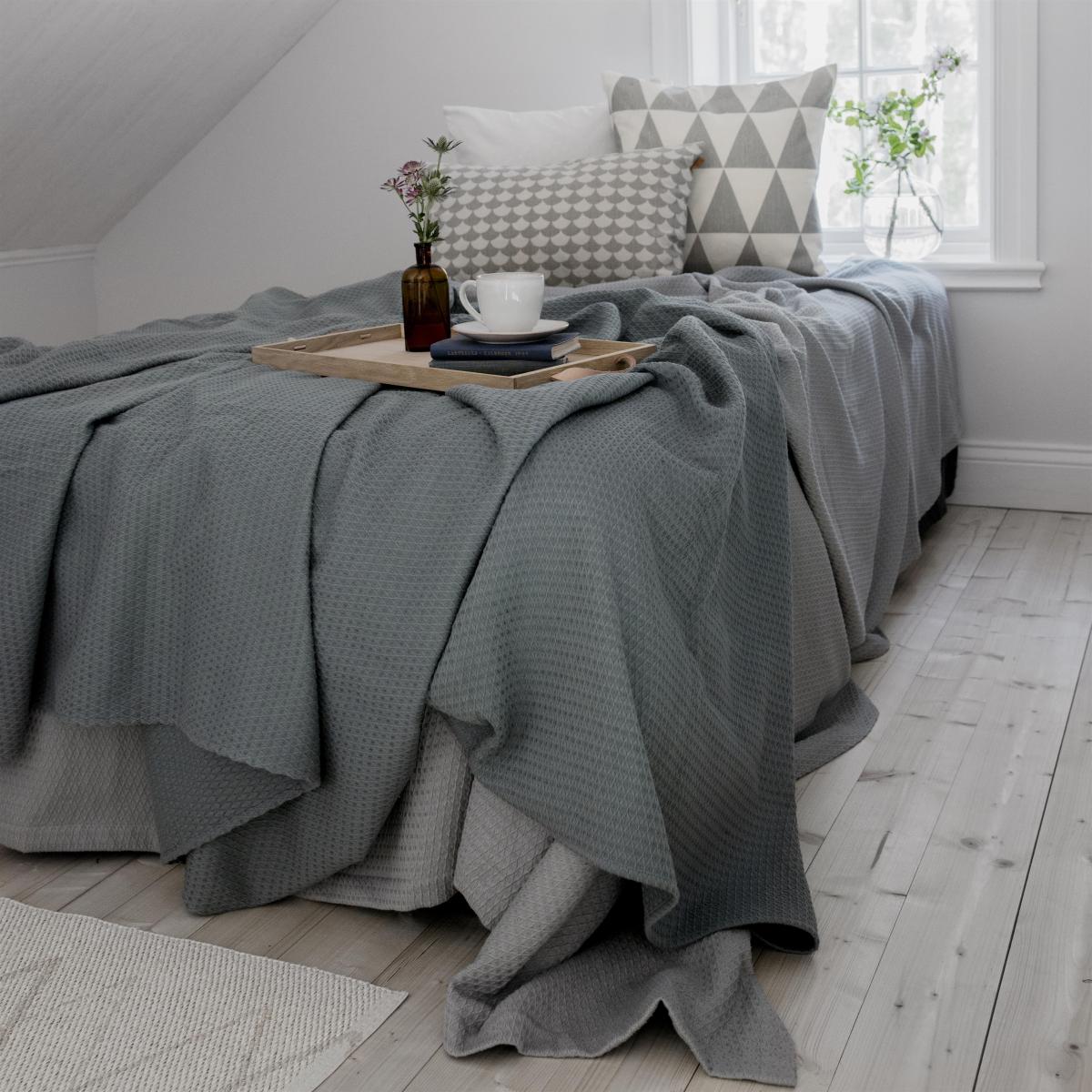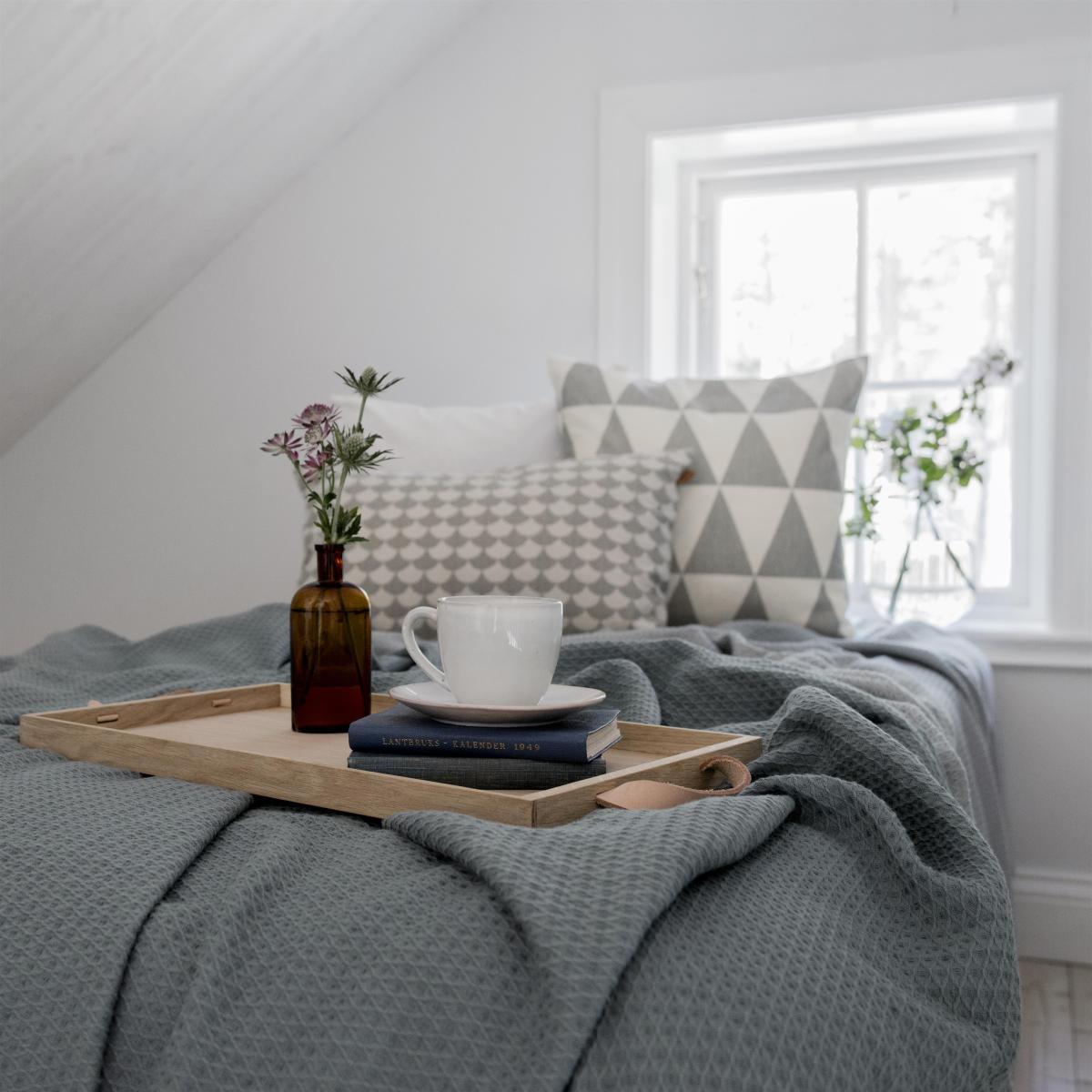 The Kimono bed spread from Scandi Living is a light bed spread in a soft, pliable material with a beautiful woven structure. Kimono is a blend of linen and cotton which gives the pattern extra lustre. Designed as a classic bed spread to adorn the foot of your bed. Available in different colours.
