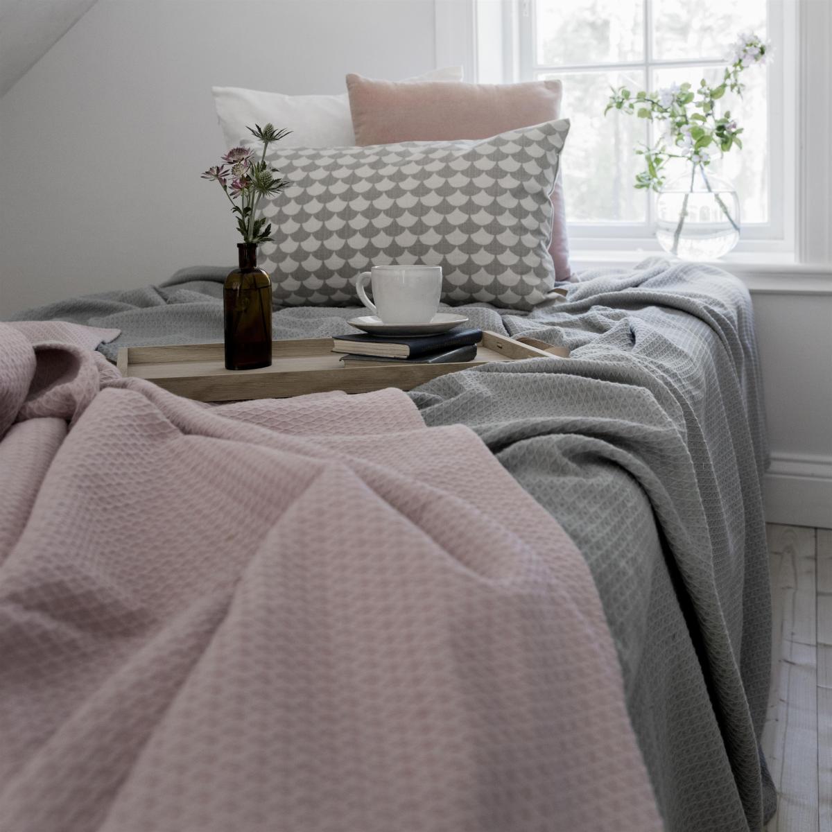 The Kimono bed spread from Scandi Living is a light bed spread in a soft, pliable material with a beautiful woven structure. Kimono is a blend of linen and cotton which gives the pattern extra lustre. Designed as a classic bed spread to adorn the foot of your bed. Available in different colours.