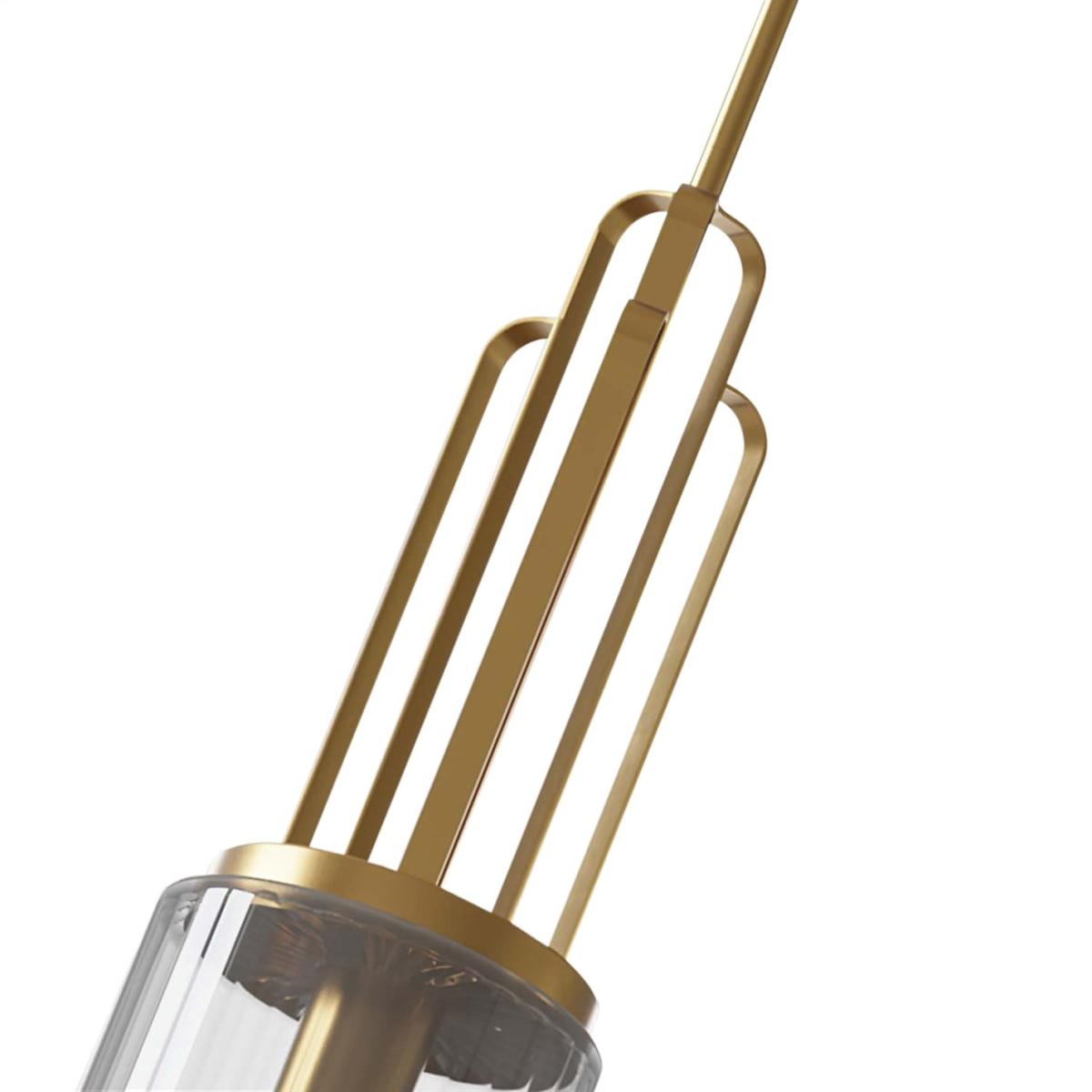 Give your interior a glam update with this Kimrose pendant light from Quintiesse. A statement addition to any space, this art deco design features geometric shapes and clear fluted glass.