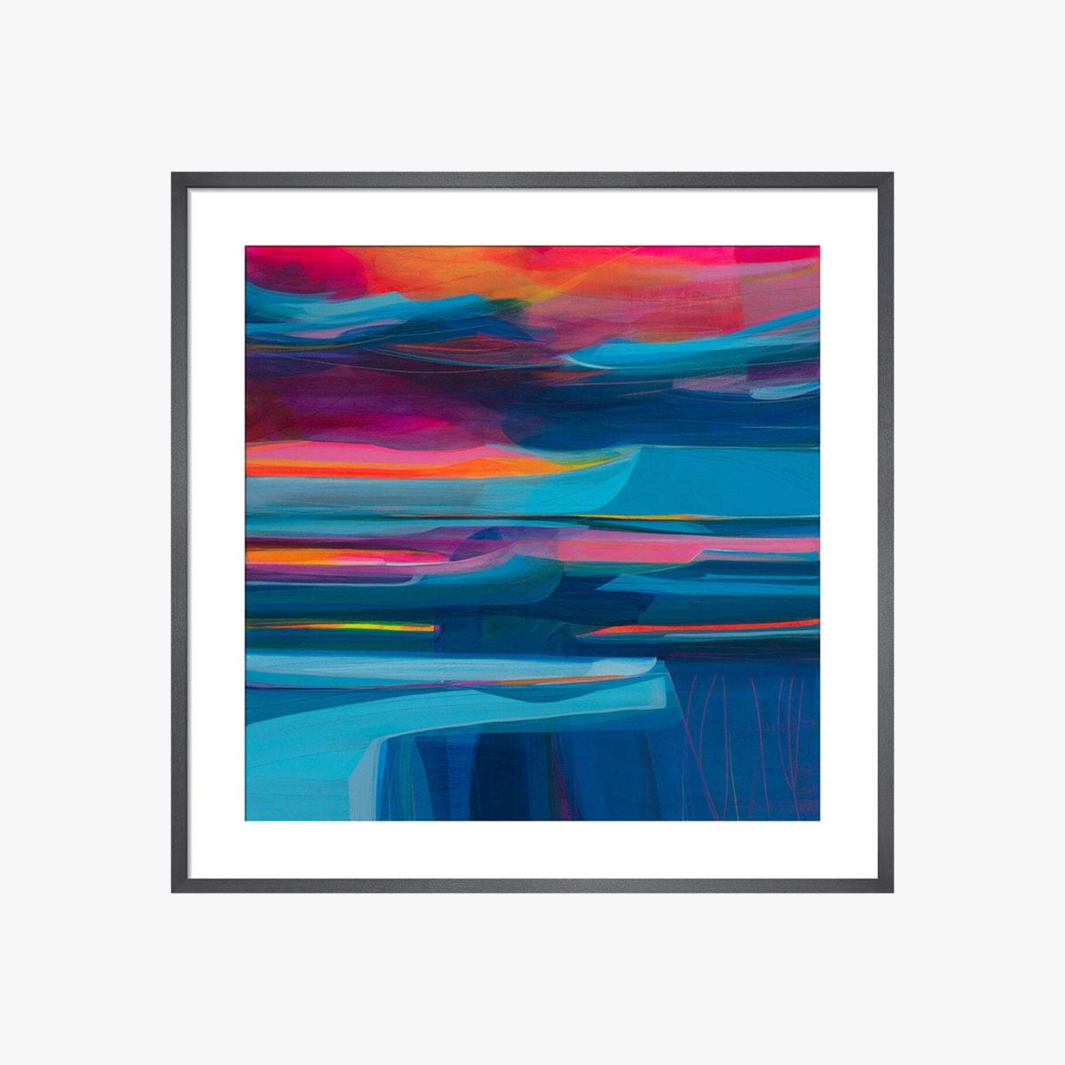 Sense of Wonder is part of a final collection of eighteen works, created over the summer of 2020 by the artist, as a joyous escape from the Covid crisis and subsequent lockdown period that followed. Inspired by the Sussex coastline and the South Downs where she lives, Faye began working on multiple canvases simultaneously, to allow her greater freedom, combining her bold expressive brushwork with the layering of colour and line. The latest introduction of fluorescent paint to her palette, captures the vibrancy and glow within these abstracted landscapes, reflecting the feelings of this extraordinary summer in all its intense glory.