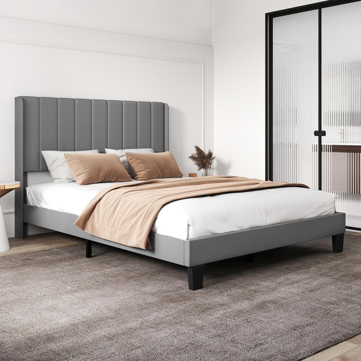 Transform your bedroom with this modern king bed frame, combining comfort, style, and practicality. The Levede upholstered bed frame features a sturdy metal structure with wooden slats for exceptional mattress support and long-term stability. Its soft fabric headboard with vertical panel design and sponge padding adds a touch of elegance and comfort, perfect for reading or relaxing. Designed with a 11.7 cm underbed clearance, it allows easy cleaning with robot vacuums or hoovers while offering discreet storage space. Finished in high-quality tech fabric, this king bed frame blends seamlessly into contemporary, minimalist, or luxury interiors.