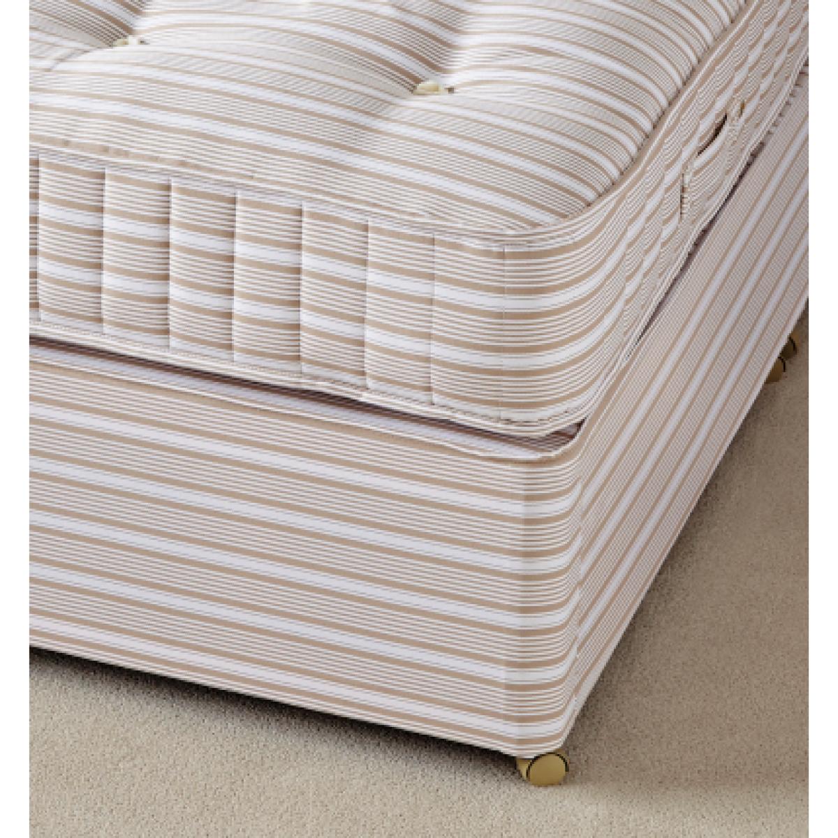Our platform top standard divan base is ideal for those who like their bed to be a little bit firmer. Using time-honoured techniques, the wooden framed base is crafted from traceable timber, then padded and upholstered in 100% cotton ticking. The king size standard divan bed base comes on castors for effortless manoeuvring and is also available with drawers if you need extra storage. Mattress sold separately; pair with our standard mattress or upgrade to the deluxe king size mattress for ultimate comfort.