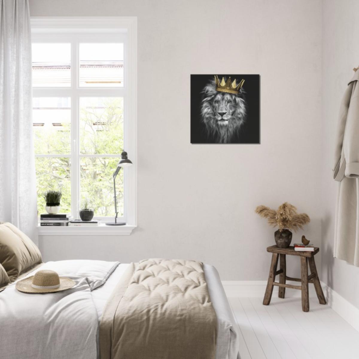 I love how the king of the jungle print makes a bold statement with its striking monochrome palette and regal gold crown. It’s a versatile piece that works well in contemporary and eclectic interiors, particularly in spaces where you want to add a touch of drama or character. To style it effectively, consider pairing it with minimalist furnishings to let the artwork stand out, or position it above a neutral sofa or bed in a monochrome or dark-toned room. Practical styling tips include framing it with a sleek, thin border to enhance its modern appeal or keeping surrounding accessories simple to focus attention on the fierce expression and commanding presence of the lion. This piece is a great conversation starter and a standout feature in any room aiming for a contemporary, edgy vibe.
