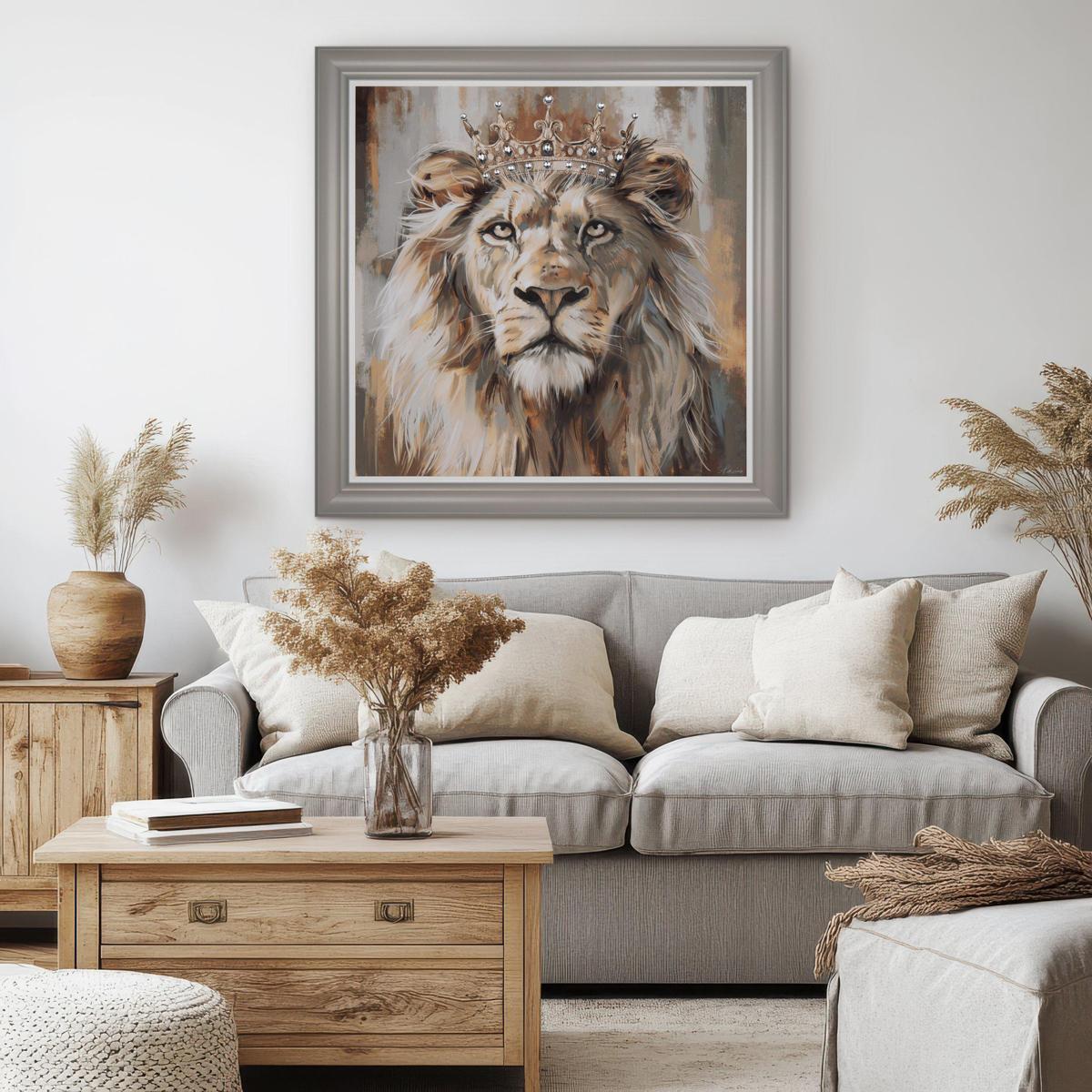 I love this King of the Wild print for its bold, commanding presence and striking detail that can really elevate a space. It works particularly well in eclectic, modern, or even tribal-inspired interiors, where it can act as a statement piece. Practical styling tips include hanging it at eye level in a living room or hallway to draw attention, or pairing it with neutral furnishings to let the artwork truly stand out. Additionally, mixing it with textured materials like leather or woven accents can enhance its regal and wild vibe, making it a focal point that adds personality and depth to your decor.