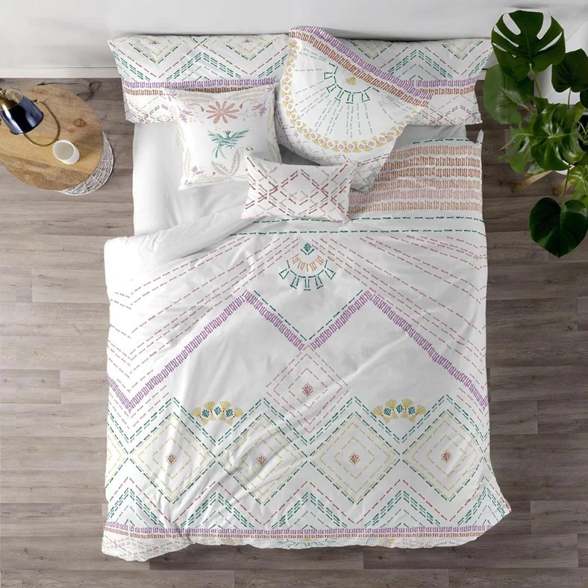 This king size bedding set brings superb comfort to your bedroom environment, with a 100% cotton material and 150 thread count ensuring a softer feel as you climb under the covers! The set has a simple modern design, which has a white base colour and a colourful geometric print that adds a vibrant pop of colour to the space for an uplifting tone. Use this set in any modern bedroom to give a calm, serene feel to your personal space.