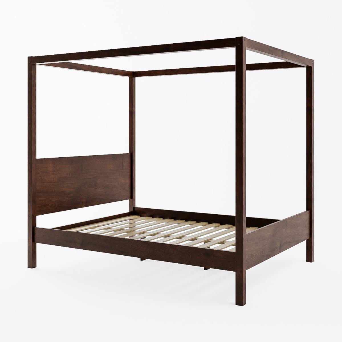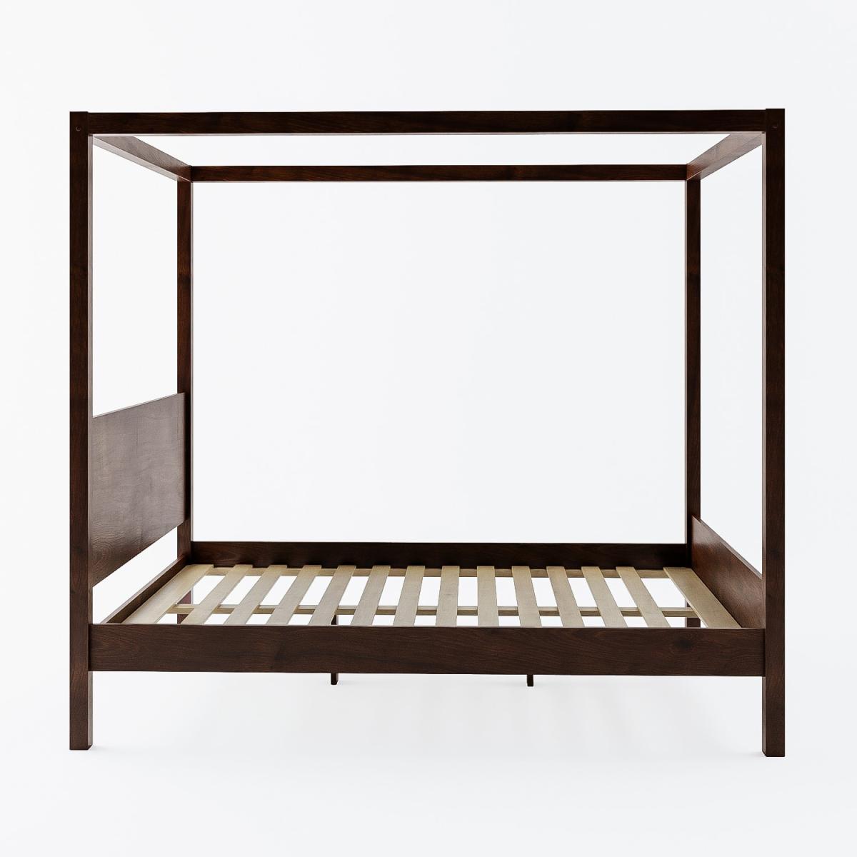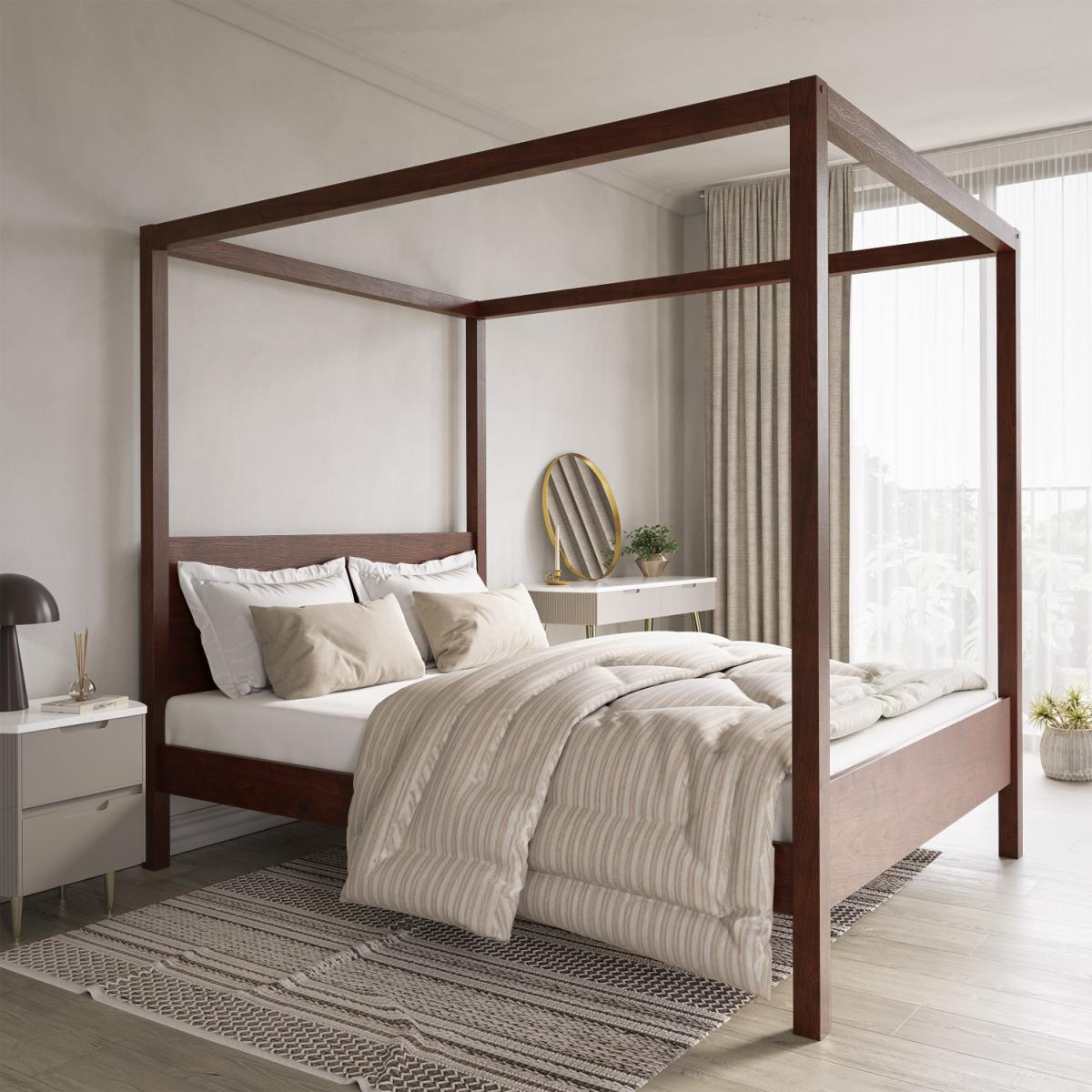 Features we love Contemporary wooden king size four poster bed frame Crafted from solid wood with a sturdy slatted base Dark walnut-stained finish coordinates with any decor Classic 4 poster design updated for the modern home Make a statement with this luxurious piece All about me Make a statement with this beautiful wooden king size four poster bed frame. Exuding elegance, with it's classic proportions and modern design, it adds a touch of luxury to any bedroom. Crafted from solid pine wood and finished with a dark walnut wood stain, the Victoria 4 poster bed is as sturdy as it is stylish. It fits a UK standard king size mattress which isn't included, so you have the freedom to choose one that's perfect for you. Need to know Packaging dimensions: Box 1: W55 x D159.5 x H9 cm / Box 2: W28 x D209.5 x H11.5 cm Packaging weights: Box 1: 35.7kg / Box 2: 29.5kg Assembled product dimensions:W159.9 x H190 x L211.4 cm Product weight:Weight: 67kg Bed mattress size: Standard UK King-size (5ft) Weight capacity: 220kg Colour: Walnut Finish:Dark wood stained Material: Solid pine wood and MDF Bed base: Slatted Assembly required: Yes Mattress included: No Please note: Single is not available in this colour