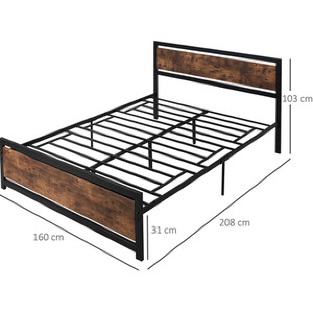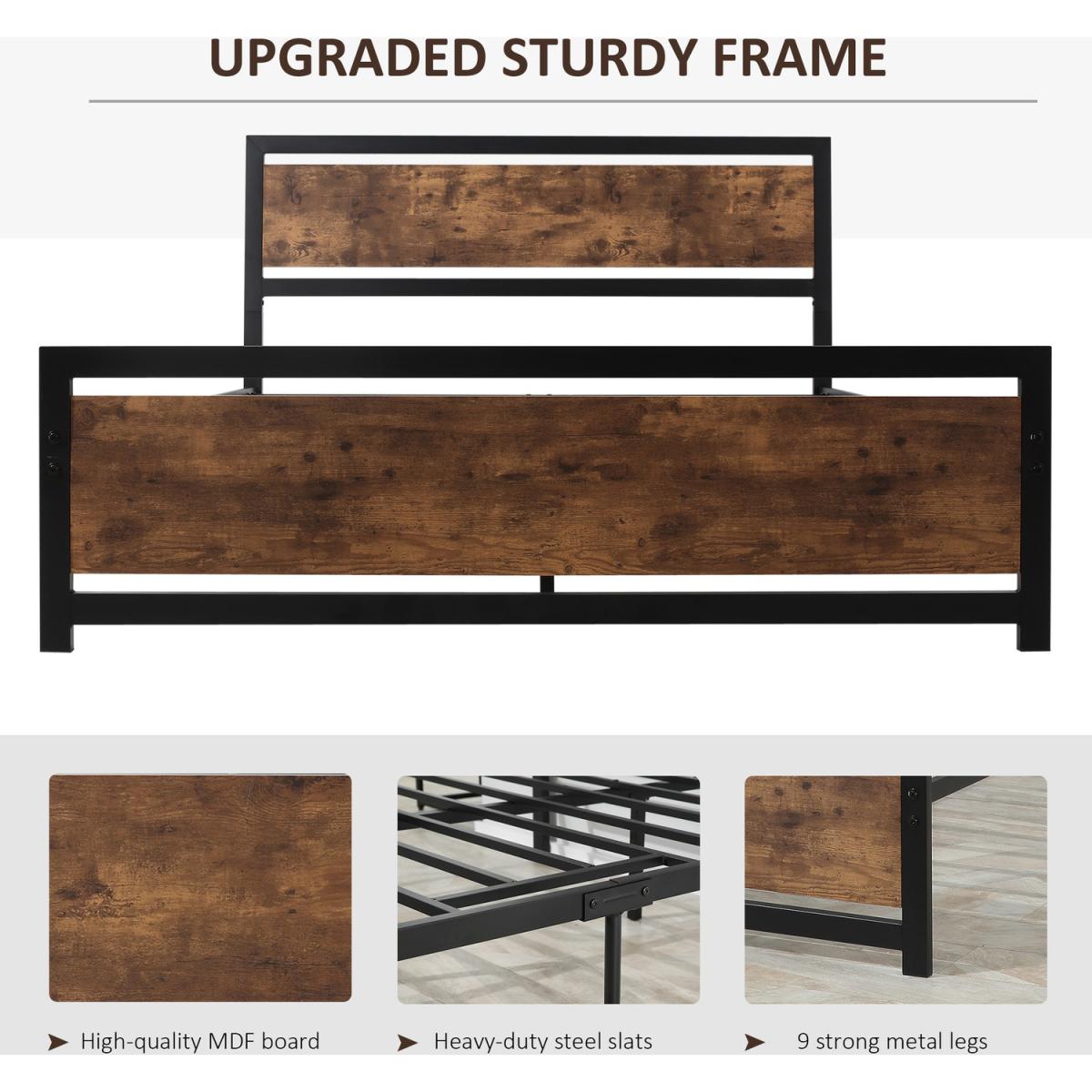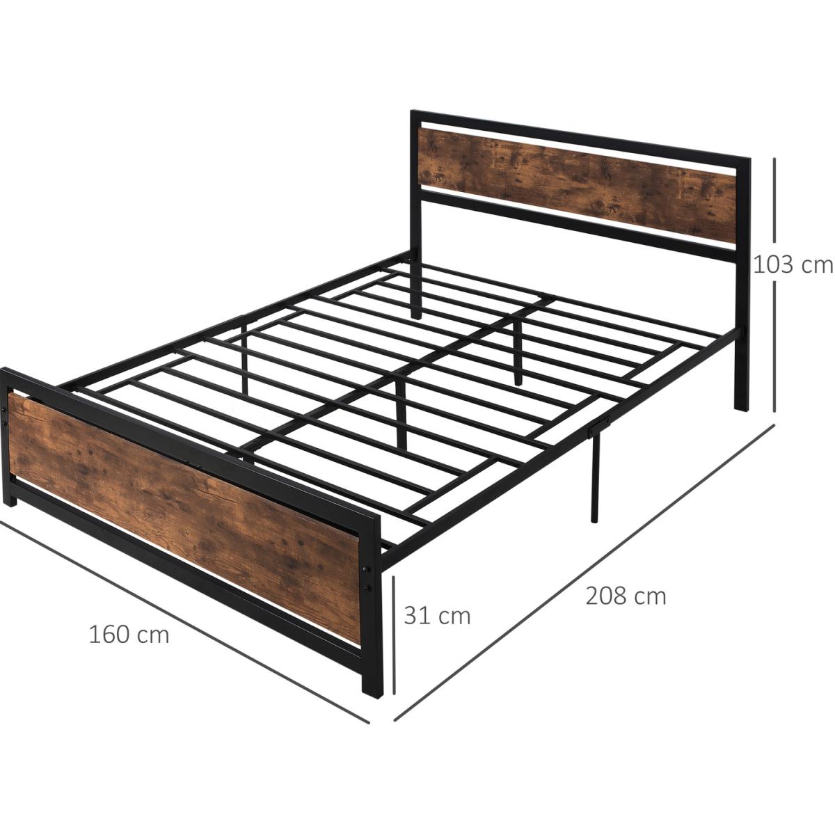 Your gateway to stylish dreaming starts here: this bed frame from HOMCOM. A brown and black minimal, rugged design creates an industrial look you'll love for seasons. The frame, made from metal for strength, features built-in slats and nine legs for full support. King size is suitable for both individuals and couples looking for plenty of sleeping and resting room. Comes with plenty of under-bed space, so you can discreetly keep boxes and cases stored away, making your room appear bigger.