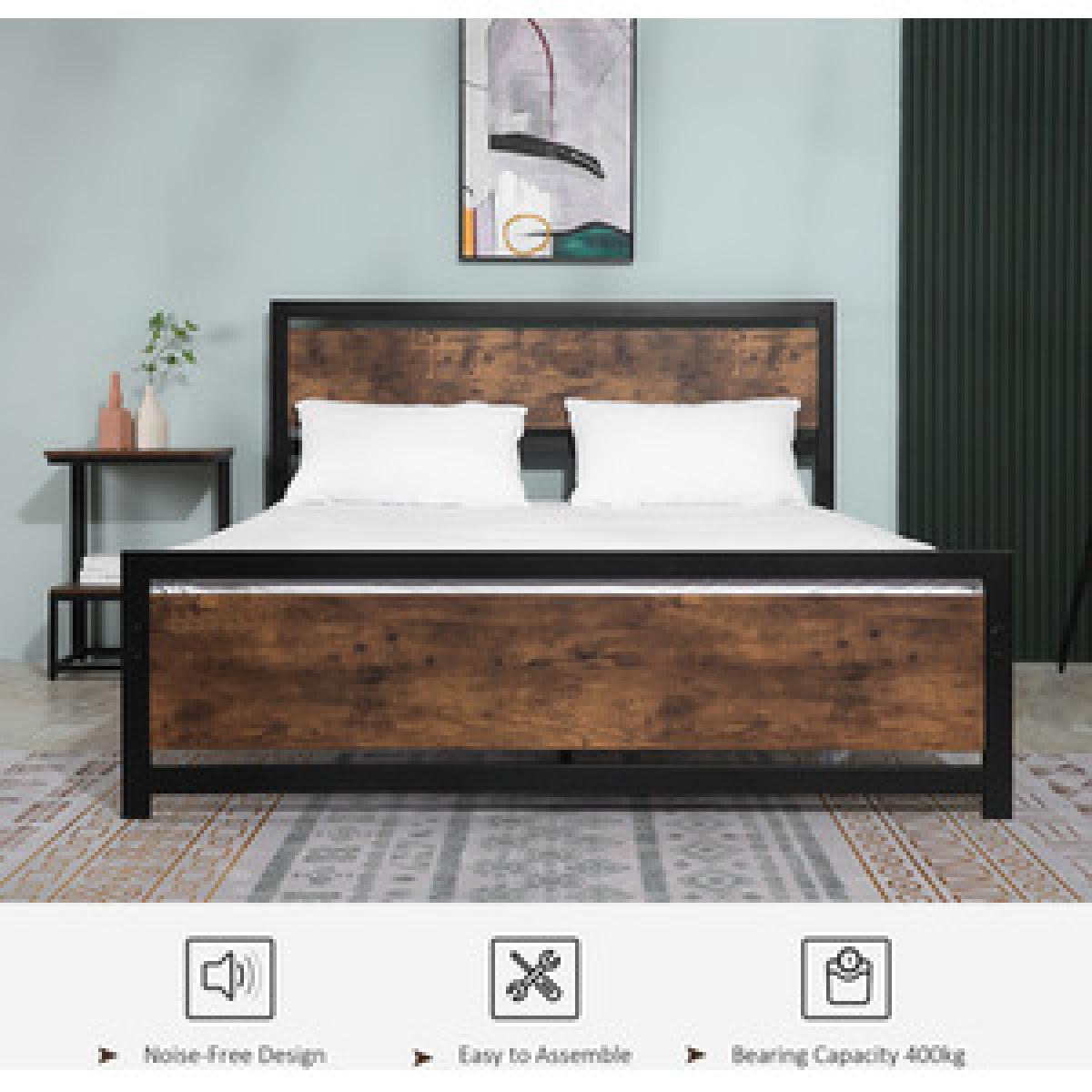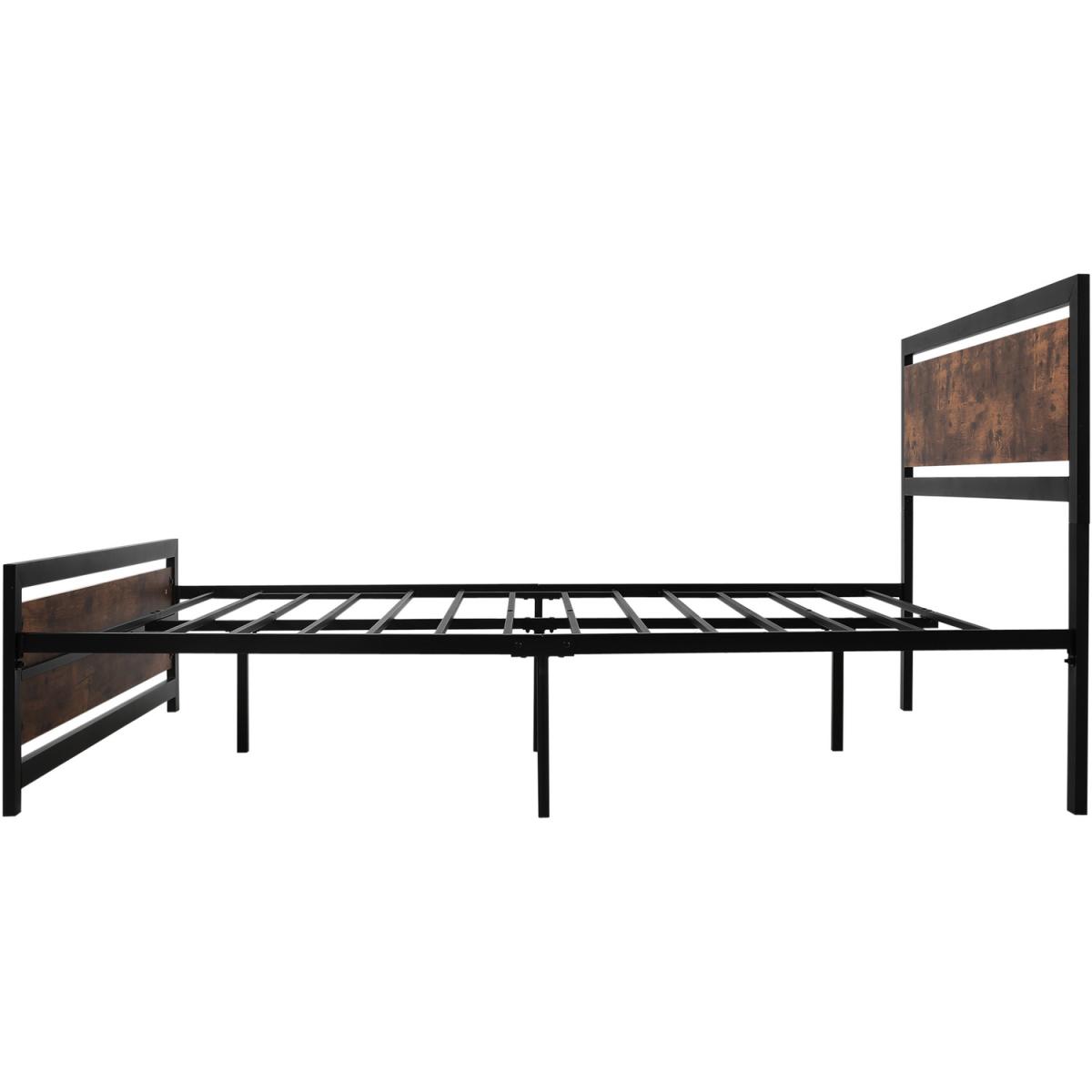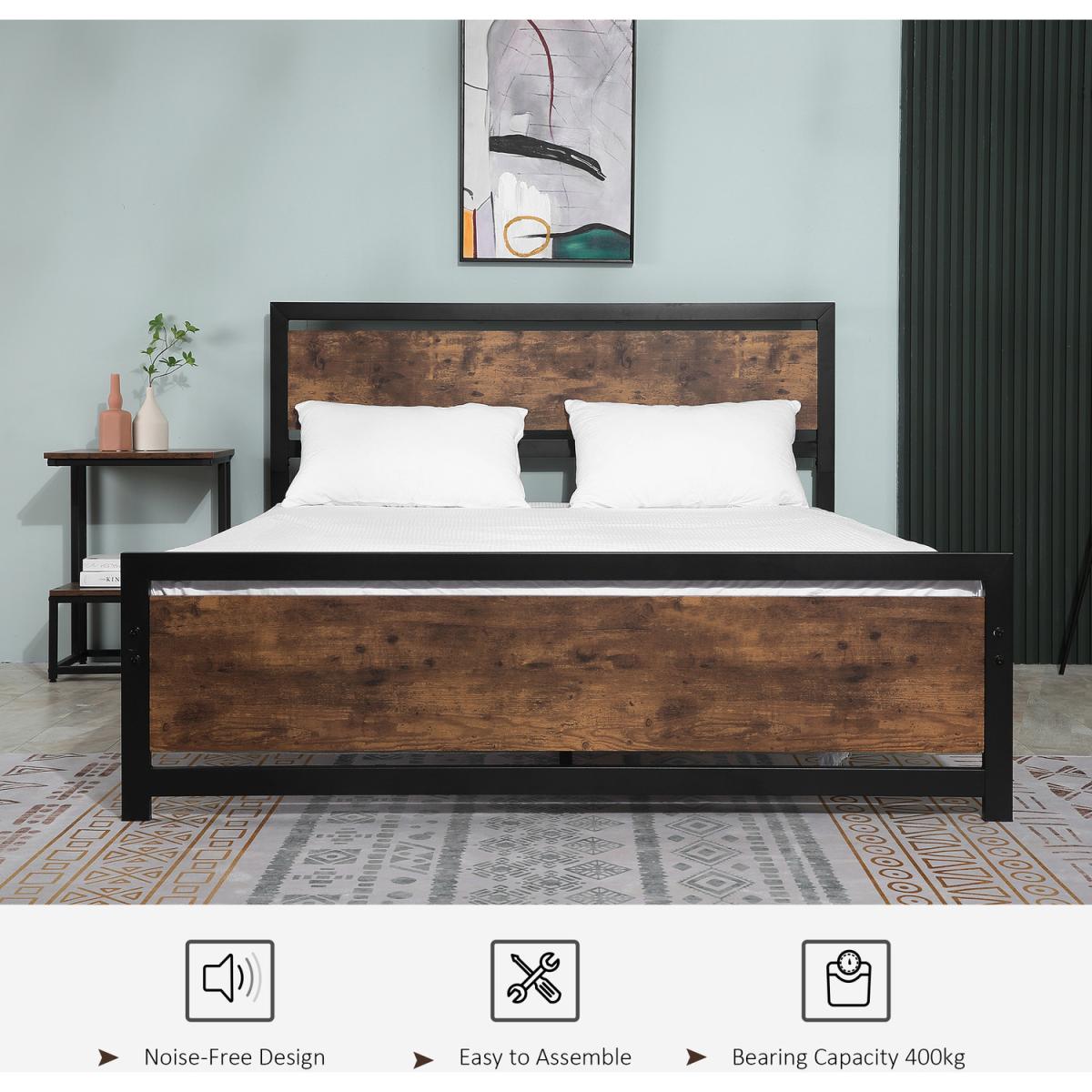 Your gateway to stylish dreaming starts here: this bed frame from HOMCOM. A brown and black minimal, rugged design creates an industrial look you'll love for seasons. The frame, made from metal for strength, features built-in slats and nine legs for full support. King size is suitable for both individuals and couples looking for plenty of sleeping and resting room. Comes with plenty of under-bed space, so you can discreetly keep boxes and cases stored away, making your room appear bigger.