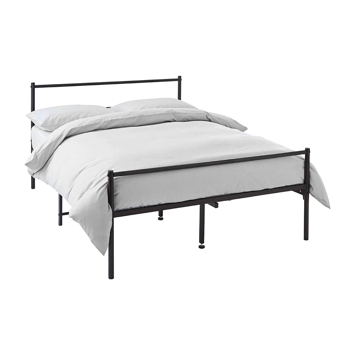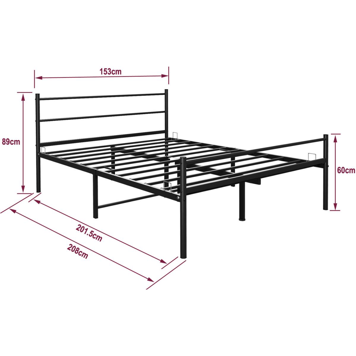 This king-size metal bed frame from House of Home is crafted with robust metal tube slats and centre support legs for added strength, ensuring a sturdy and enduring bed frame. The bed frame boasts a spacious under-bed storage area, perfect for accommodating storage drawers, baskets, and containers to conceal any bedroom clutter. Ideal for a guest's bedroom or your own minimalist bedroom. The bed frame is quick and straightforward to assemble. It is supplied flat-packed with easy-to-follow instructions, enabling swift and effortless assembly. All components required for constructing your bed frame are included in the box. The king bed frame incorporates reinforced bars with a maximum weight capacity of 240kg, delivering a robust and durable bed frame capable of withstanding heavy loads. The bed frame dimensions are 208cm x 153cm x 89cm, offering ample space for a comfortable and restful sleep. Its generous size makes it an ideal choice for individuals and couples seeking a reliable and spacious sleeping solution.