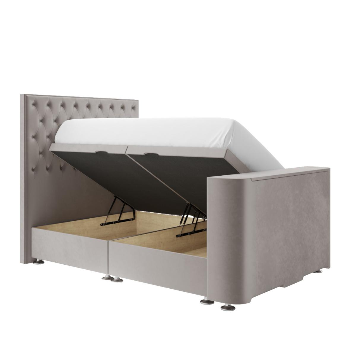 The Avery TV bed frame enables you to watch your favourite TV shows and films from the comfort of your own bedroom. Once you've installed your perfect TV, watch it rise from the footboard with one click of the remote and enjoy your very own private cinema. The padded Chesterfield headboard and sumptuous velvet upholstery make it the perfect place to relax and, along with its sturdy build and ottoman storage, you can rest assured it'll provide style, function and entertainment for years to come. What's more, receive 10% off selected mattresses when bought with this bed - check out our popular package deals.