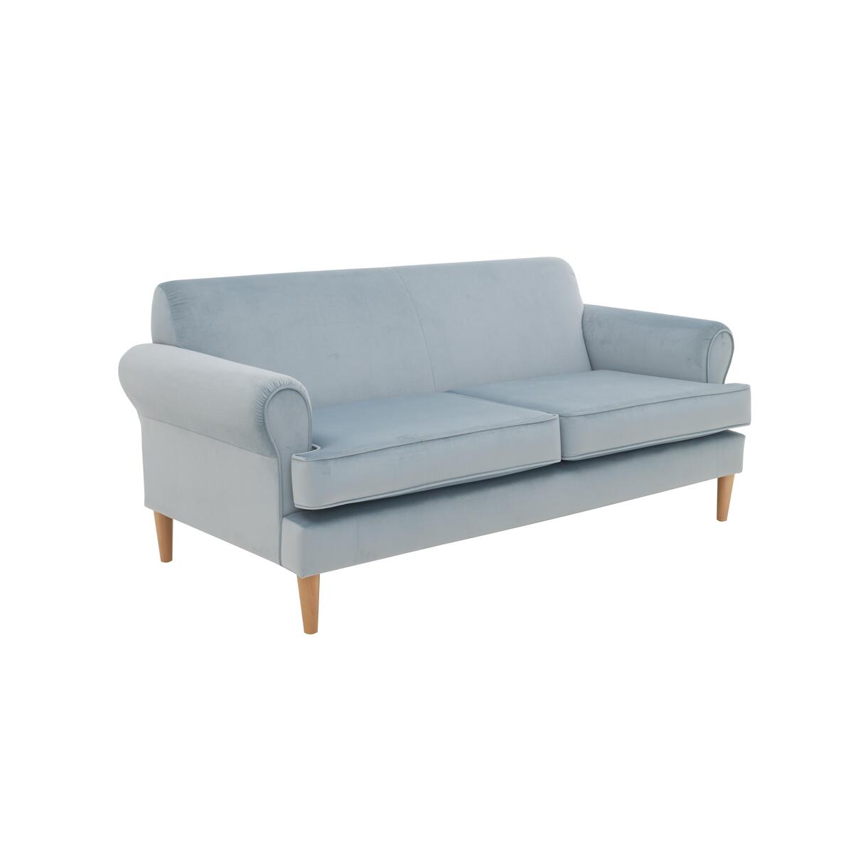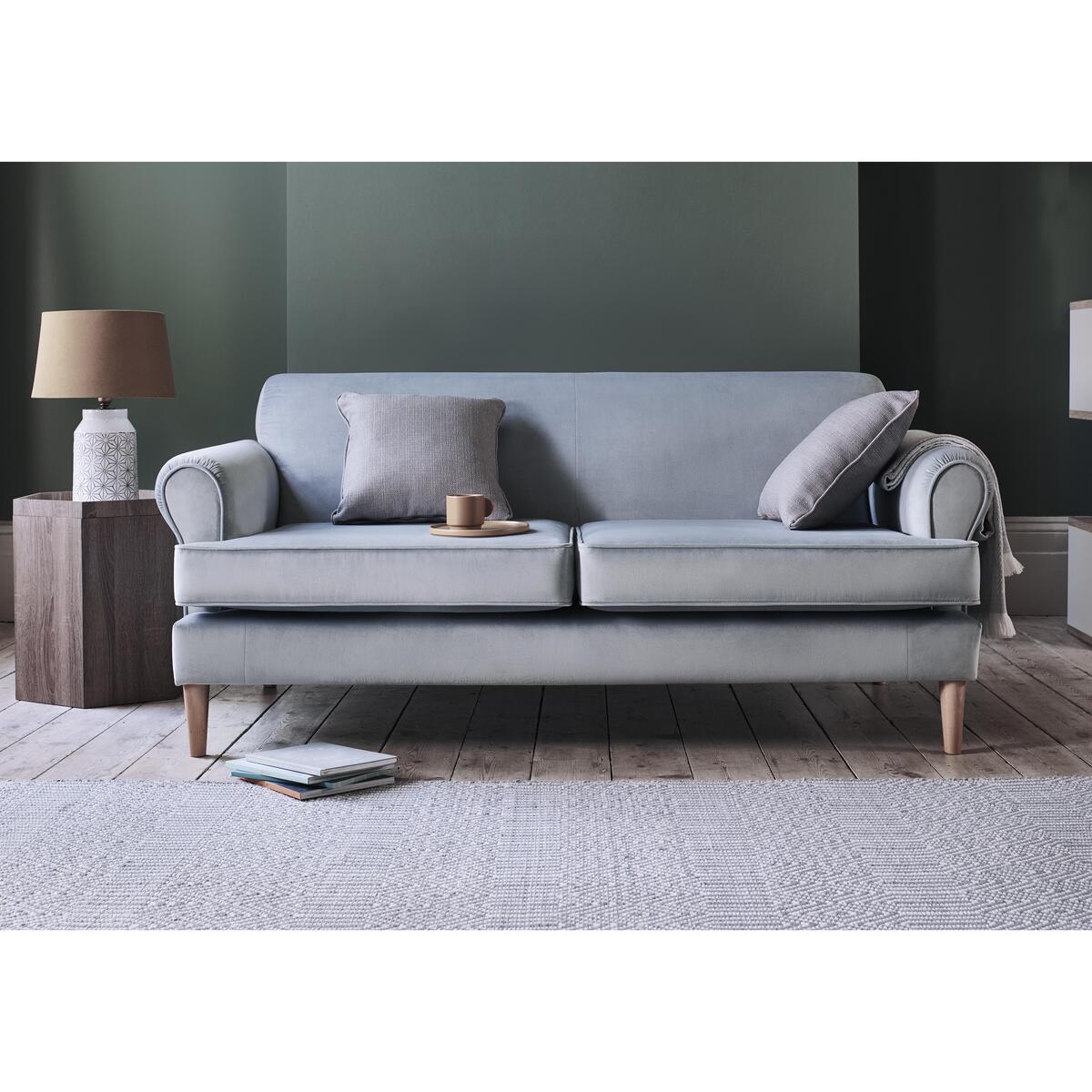 English style meets Scandi-cool. Super-comfortable sprung seating. Specially designed for smaller spaces. Handmade in Britain. Blurring the lines between Scandi design and classic English style, the City Limits King Street 3 Seater Fabric Sofa is the epitome of retro elegance. Handcrafted right here in the UK, you can rest easy knowing it’s been made to the highest standard. You’ll soon fall in love with its roomy, super-comfortable feel. The seat and back cushions are sprung for extra comfort and filled with soft foam for a supportive yet cosy sit. Whether you like to curl up or chill out, you can do it here in the wonderful softness of velvet or textured linen upholstery. Scroll arms add graceful, classic charm to this stylish sofa that’s perfect for updating your space. Thanks to its compact size, those in cosier spaces can enjoy this beautiful design without giving up extra floorspace, which we love. Scandi-style light wood legs are the finishing touch, an elegant accent to this timeless sofa. Colourful scatter cushions are available to buy separately.
