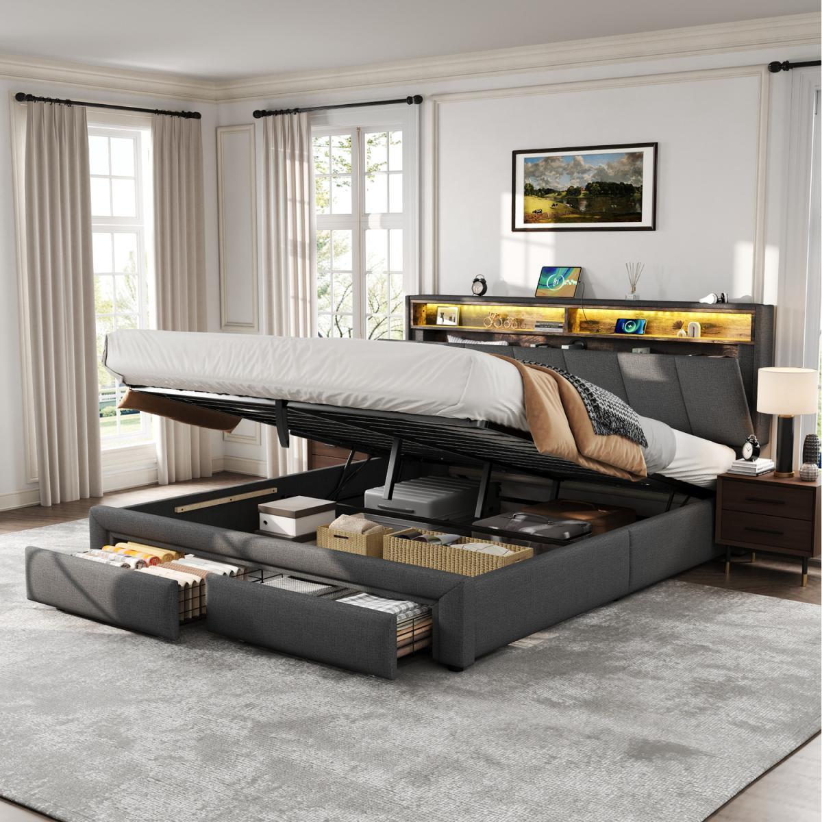 This ottoman upholstered bed has ample storage space, you can store blankets, bed linen, toys and others under the hydraulic bed, concealed headboard storage, storage drawers and side pockets to make your bedroom neat and organised. Its bedside is equipped with a Type-C port and USB port ensuring your devices are always charged and ready to use. Combined with colourful RGB LED lighting strips and a channel tufted design, this upholstered bed frame can lend chic and subtle beauty to your bedroom. Thick sponge and wear-resistant, breathable linen fabric and adjustable headboard give you a comfortable experience.