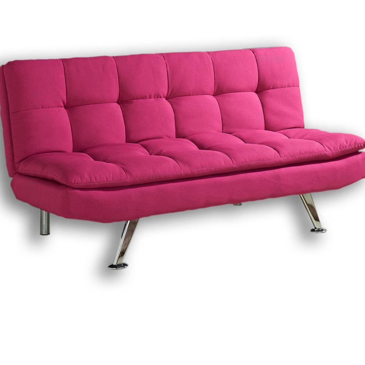 Introducing KINGDOM, a 3-seater fabric sofa bed, available in Cream, Charcoal, Blue and Pink Fabric. KINGDOM features generously padded pillow-topper style seat and backrest cushions and stands on chrome metal legs. Convertible design - this sofa bed has a simple clic-clac mechanism that allows it to swiftly and simply transform from a sofa to a recliner to a bed, making it ideal for overnight guests. To get the most out of your sofa bed we recommend gently cleaning with the upholstery attachment of your vacuum cleaner or using a sofa hand brush once per week. You might need to screw the legs to the underside as some of our sofa beds since they don't all have pre-drilled holes. All of our sofa beds come with an easy-to-follow assembly guide. Delivered by our friendly couriers on a 2-man delivery service within 3-7 working days. The courier will deliver to a room of your choice.