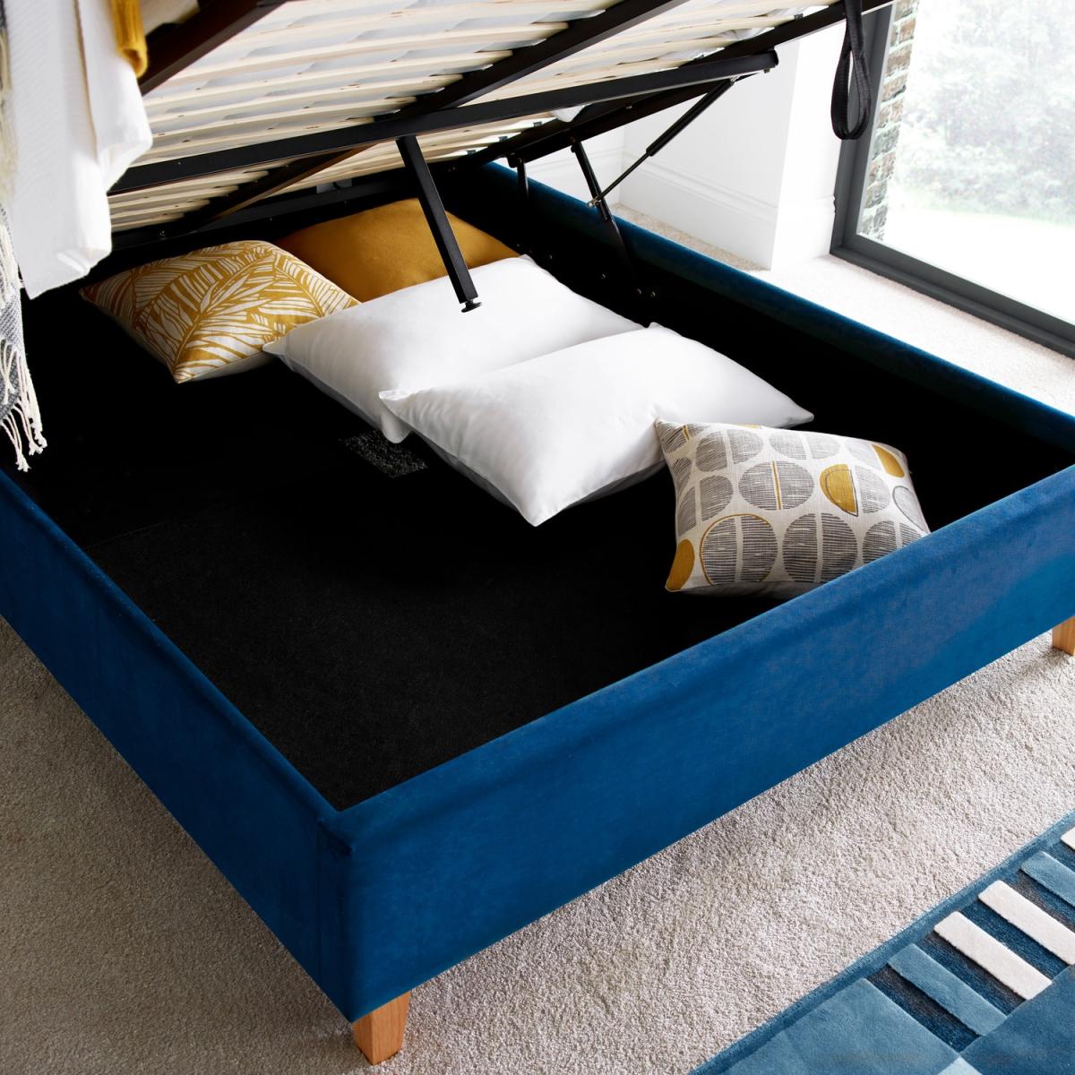 Kingham Blue Velvet Ottoman Bed - Blue / Double